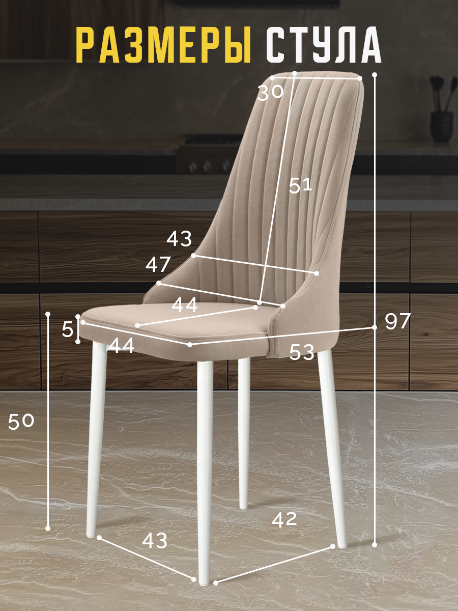 СохранитьСтулья для кухни 2 шт Кора мягкие, с высокой спинкой, бежевый велюр / Комплект кухонный стульев интересное:
