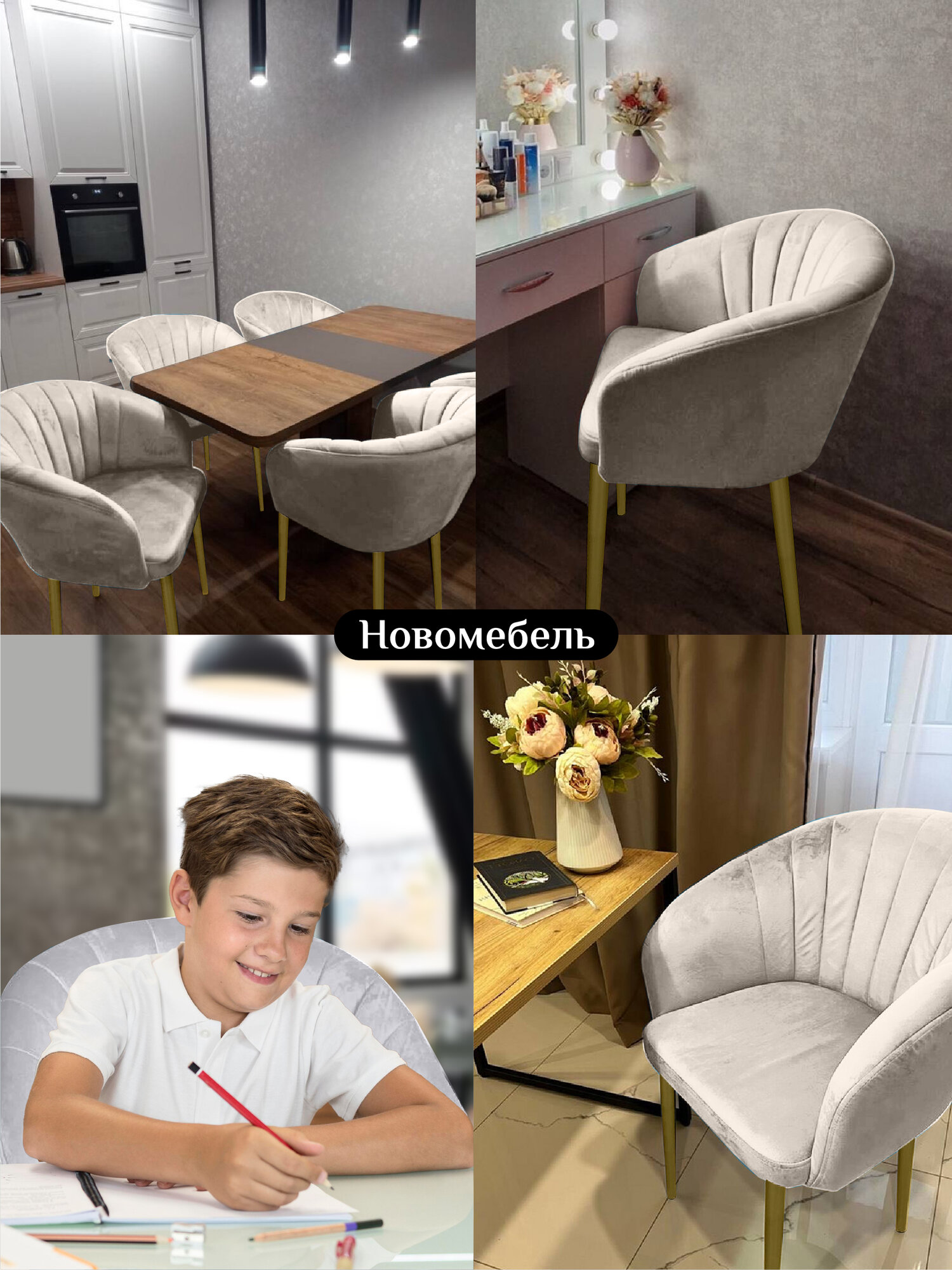 СохранитьСтулья для кухни мягкие комплект 4 шт новомебель Версаль велюр бежевый с золотыми ножками интересное: