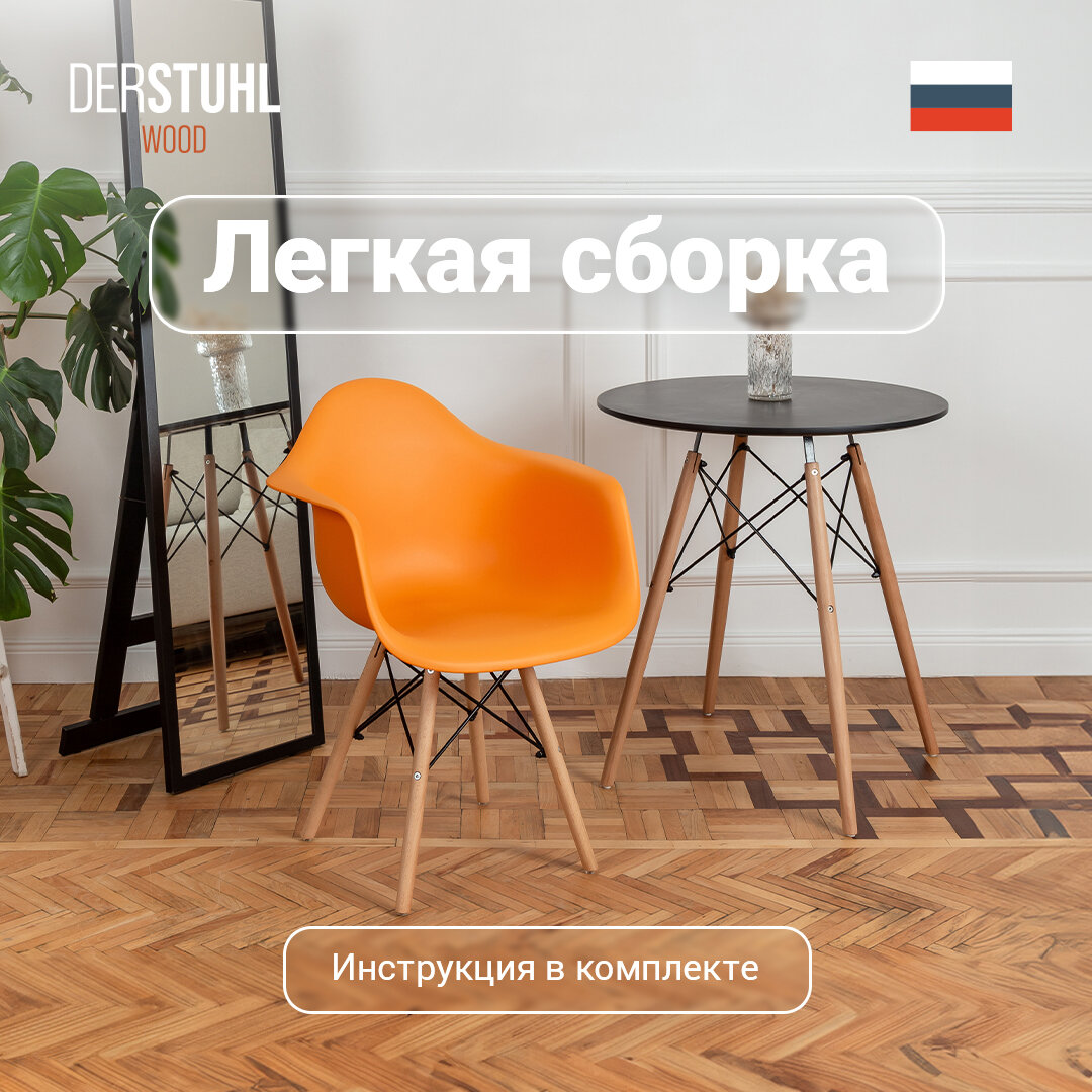 Стул кресло для кухни пластиковый обеденный Eames Эймс, оранжевый