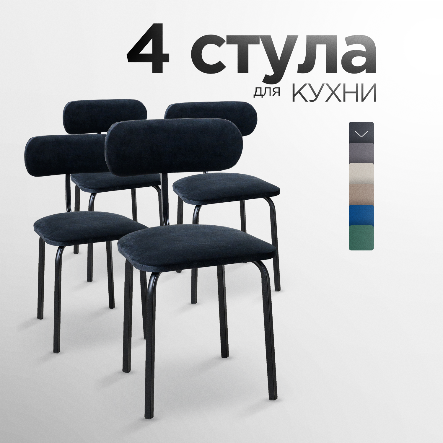 Стулья для кухни STULER chairs Комплект мягких стульев Nova 4 шт, Синий велюр черные матовые ножки
