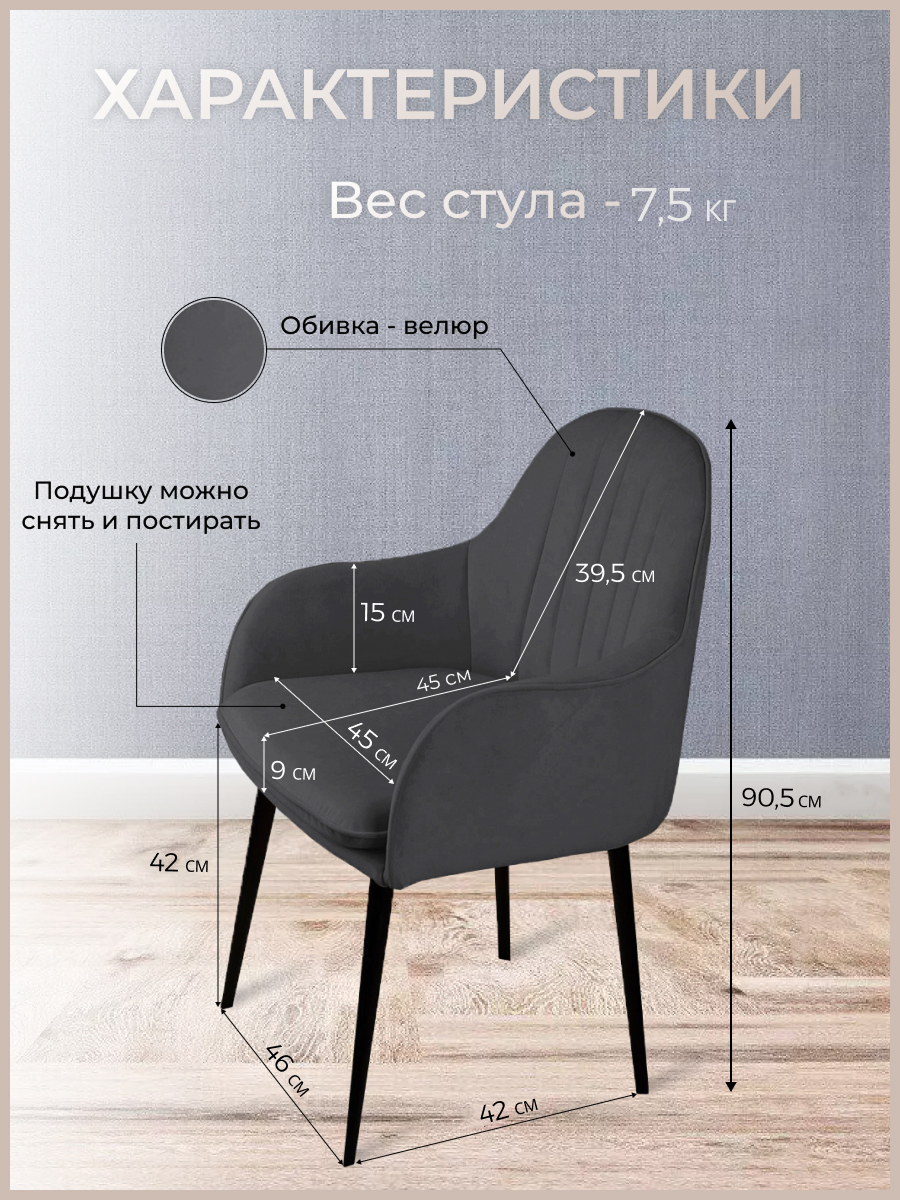 СохранитьСтул для кухни, дома, офиса Санрайс, ноги черный металл, темно-серый интересное: