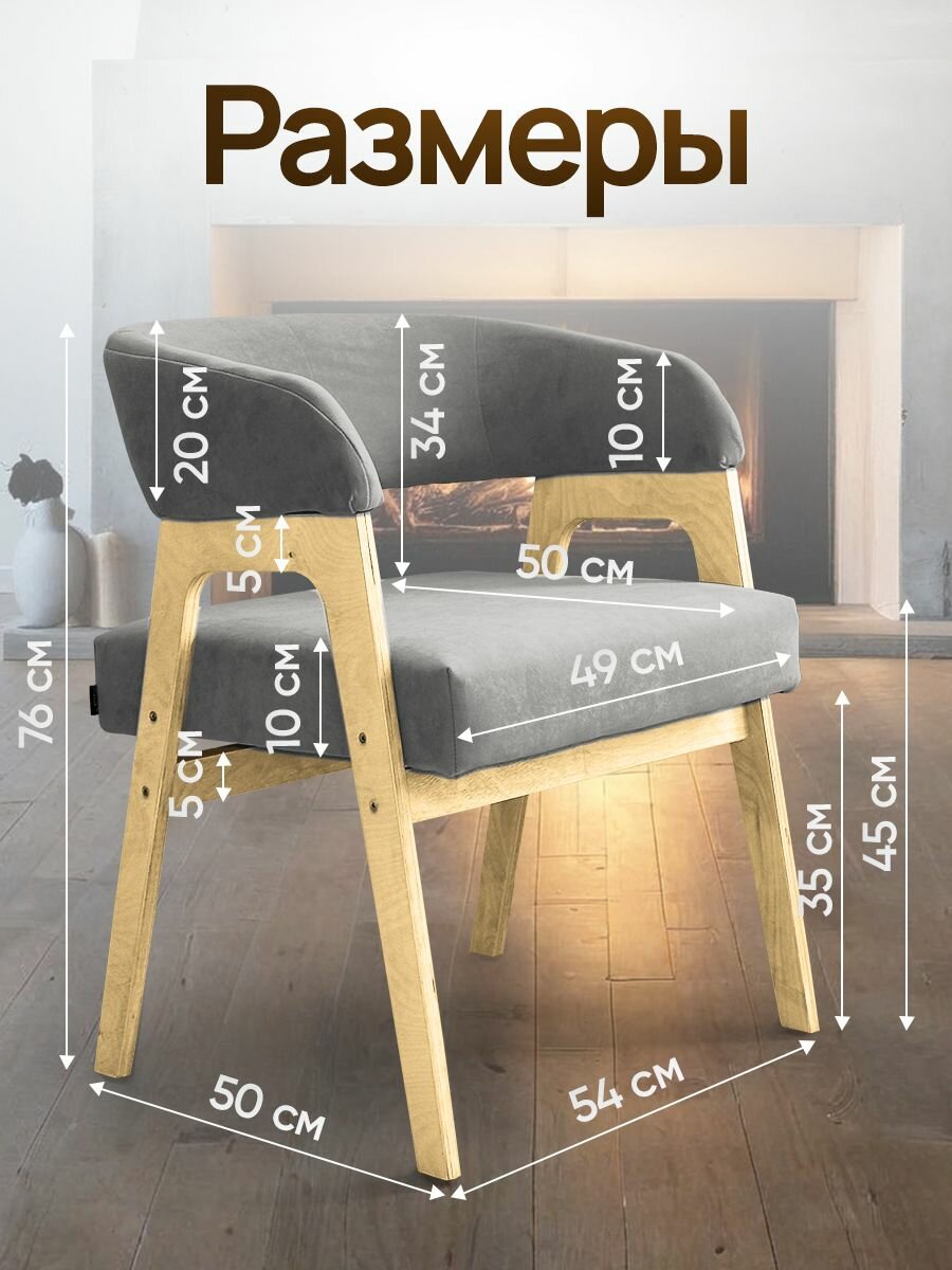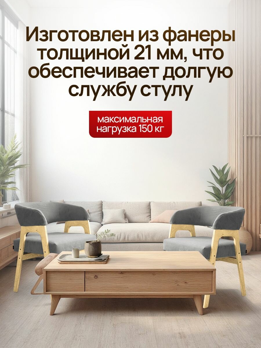 Стулья для кухни 2 шт мягкие, деревянный кухонный, комплект, обеденные, в гостиную, с подлокотниками, Серый цвет, Темное дерево.