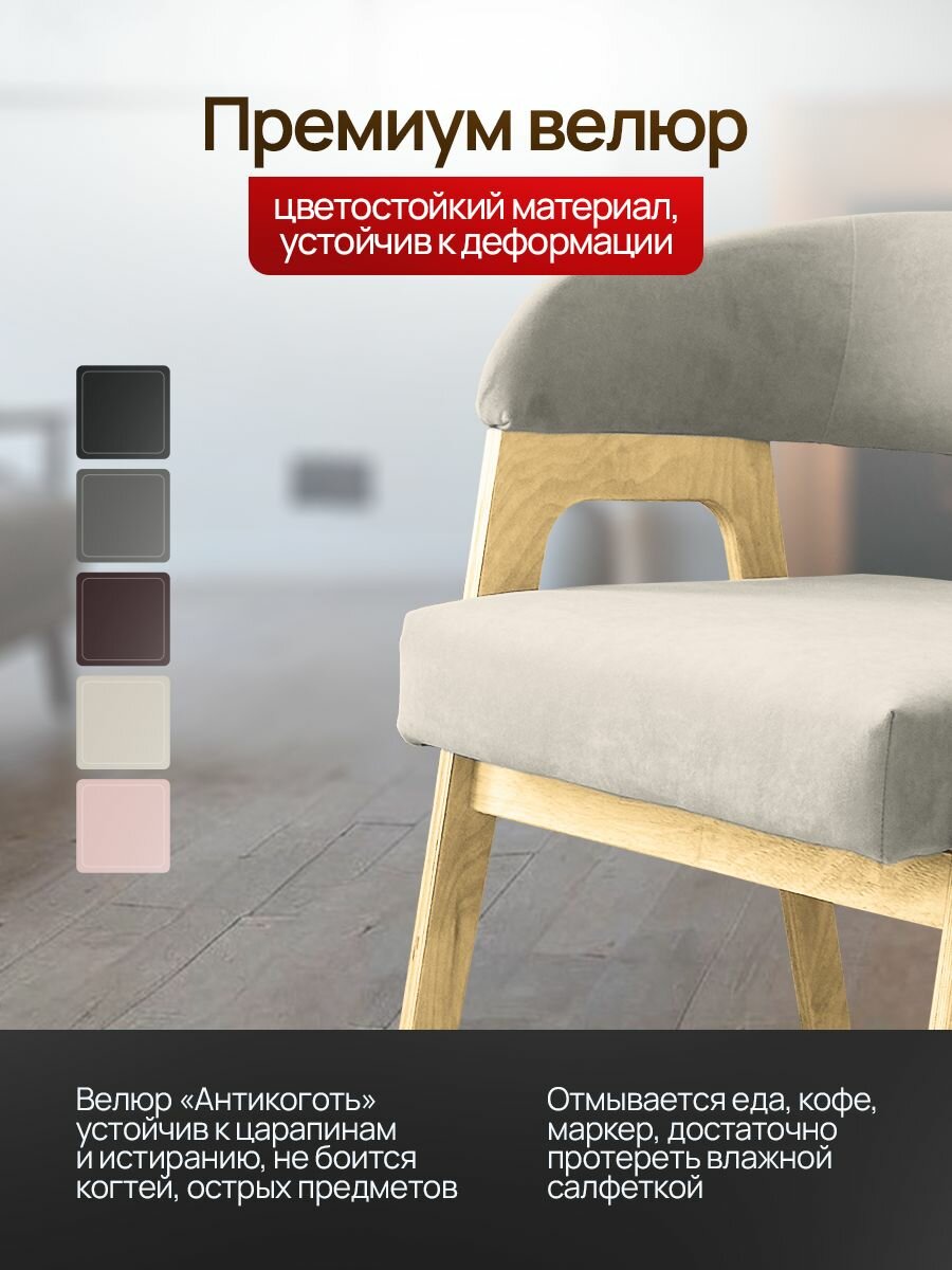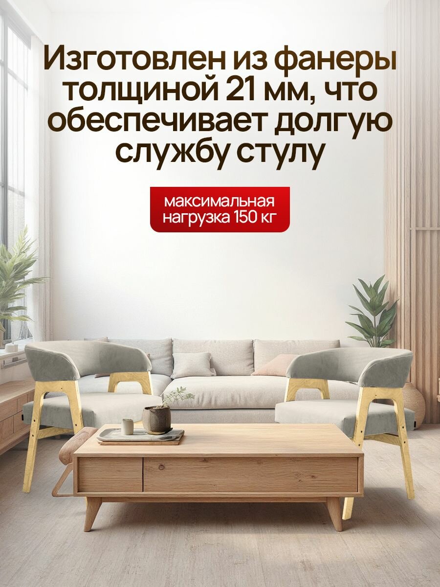 Стулья STULER "Viva", офисный, велюр, бежевый, темное дерево, мягкое сидение