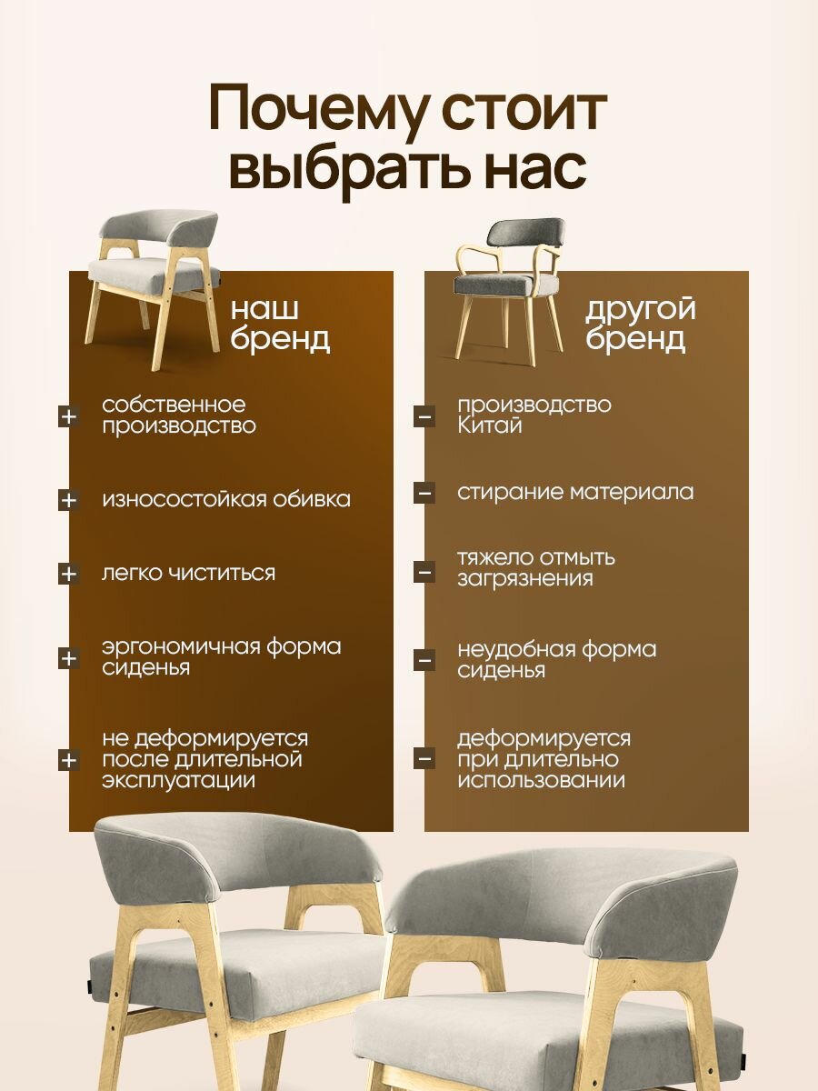 Стулья для кухни 2 шт мягкие, деревянный кухонный, комплект, обеденные, в гостиную, с подлокотниками, Серый цвет, Темное дерево.