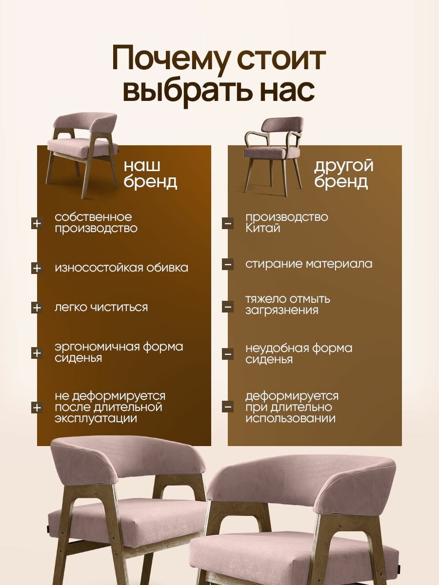 Стулья для кухни 2 шт мягкие, деревянный кухонный, комплект, обеденные, в гостиную, с подлокотниками, Шоколадный цвет, Темное дерево.