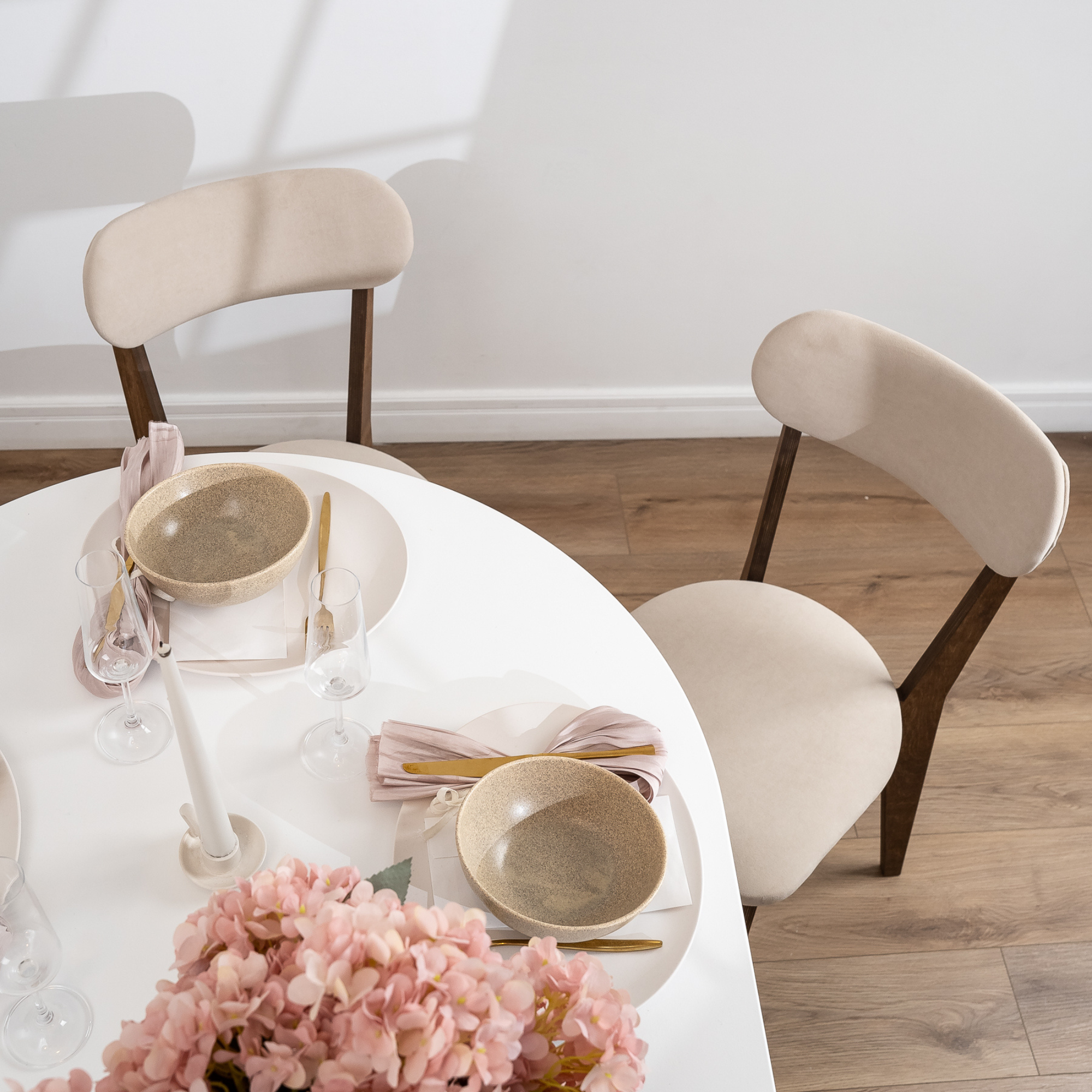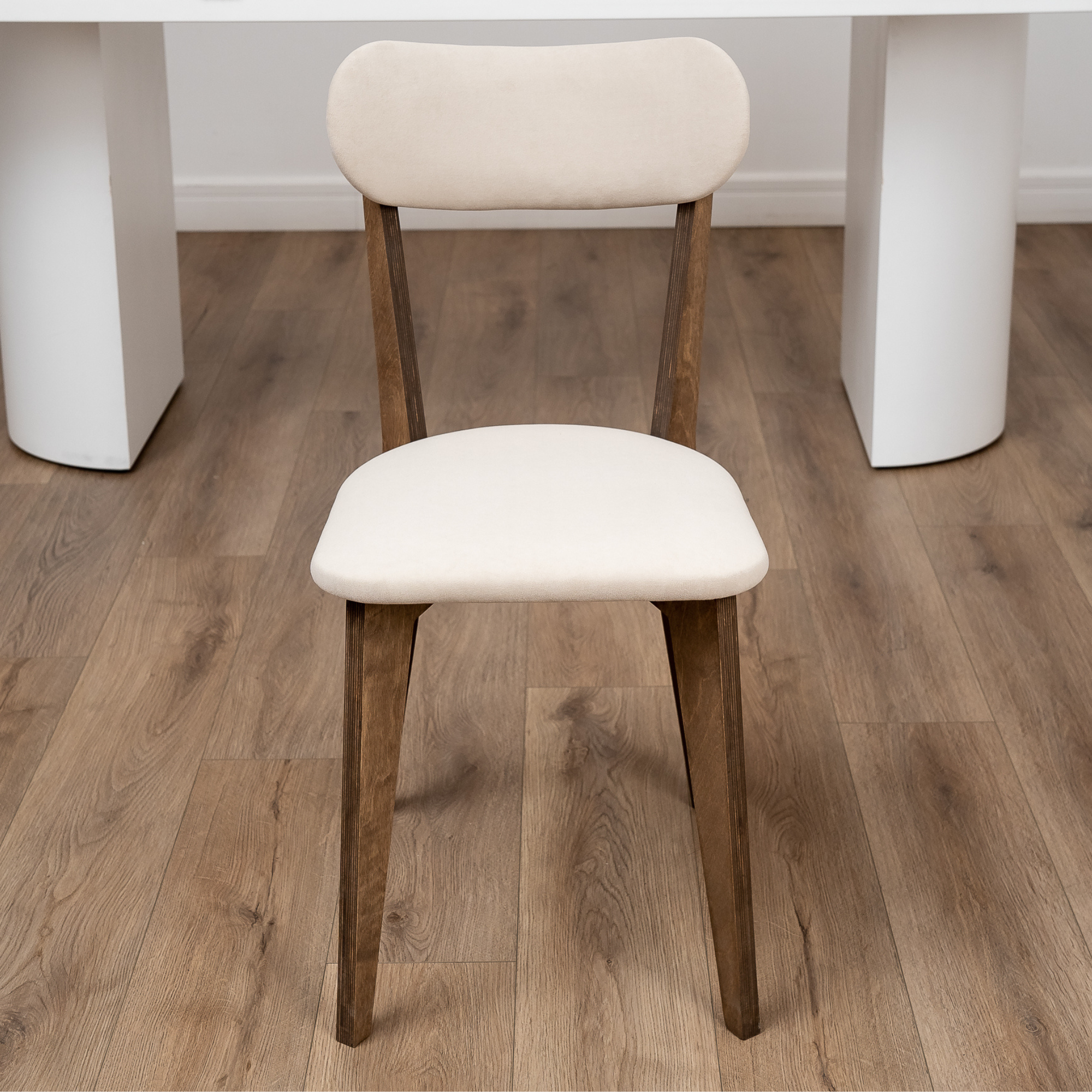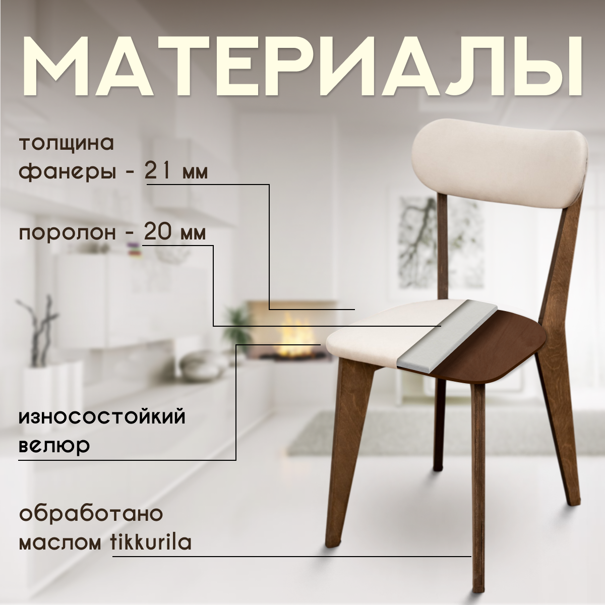 Стулья для кухни SANYAK комплект 4 шт деревянные мягкие со спинкой для обеденной зоны, велюр, Бежевый