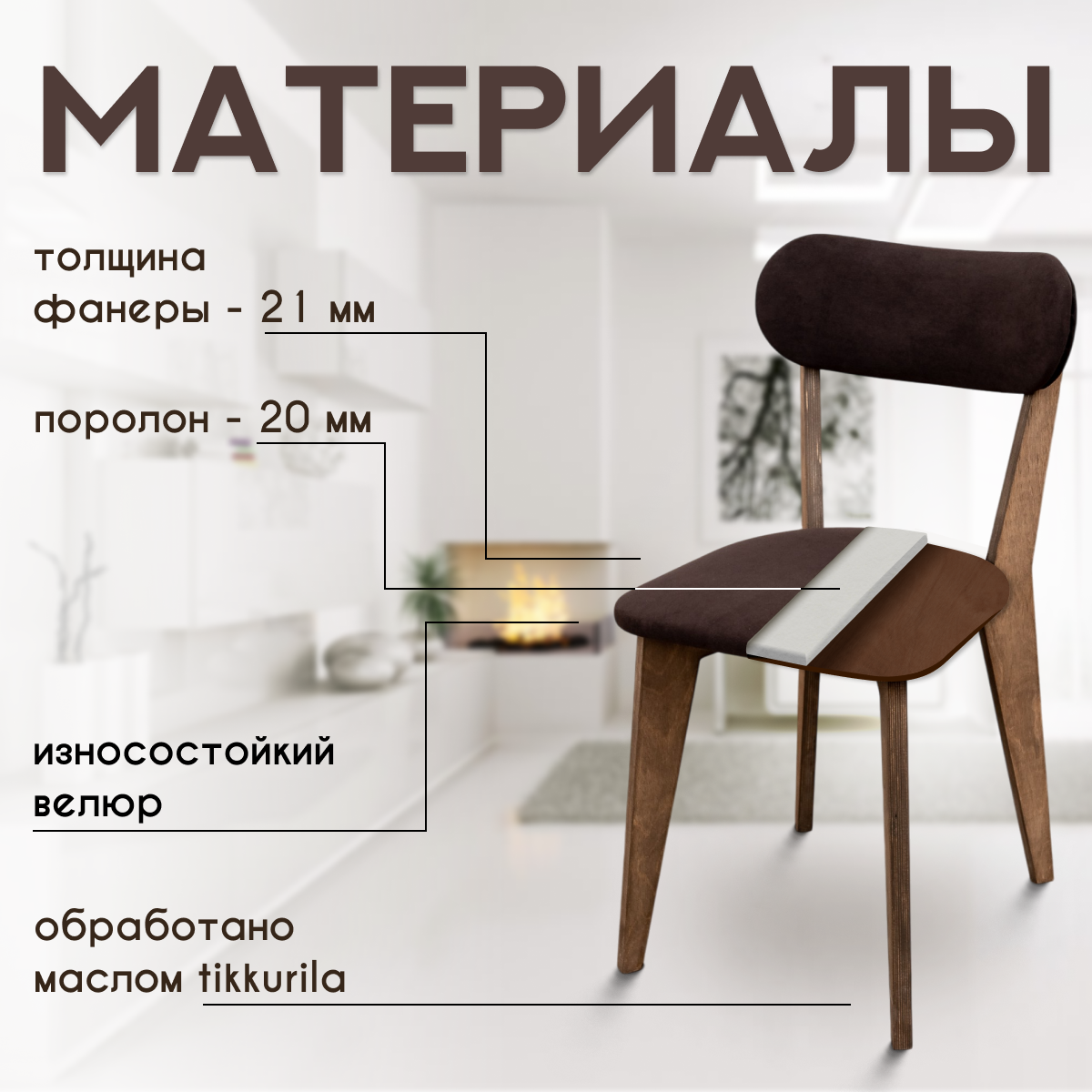 Стулья для кухни SANYAK комплект 4 шт деревянные мягкие со спинкой для обеденной зоны, велюр, Коричневый