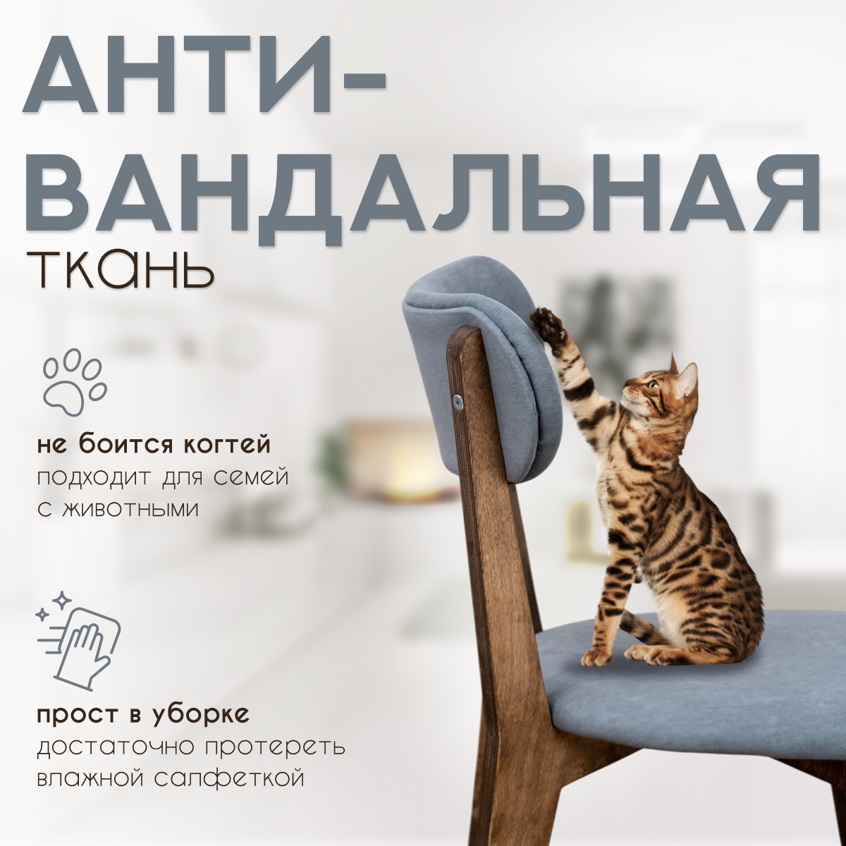 Стулья для кухни SANYAK комплект 4 шт деревянные мягкие со спинкой для обеденной зоны, велюр, Синий