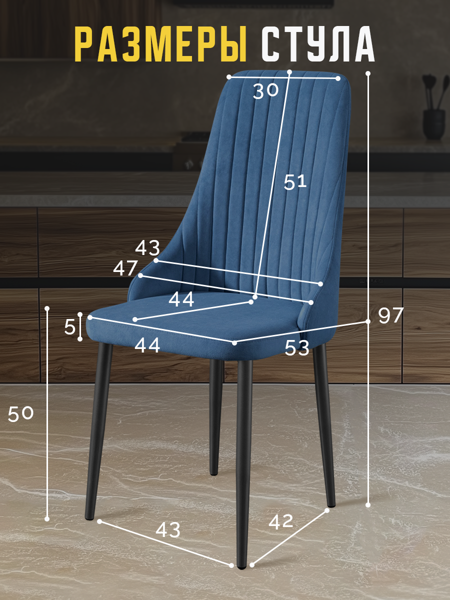 СохранитьСтулья для кухни 2 шт Кора мягкие, с высокой спинкой, синие, велюр / Комплект кухонных стульев интересное: