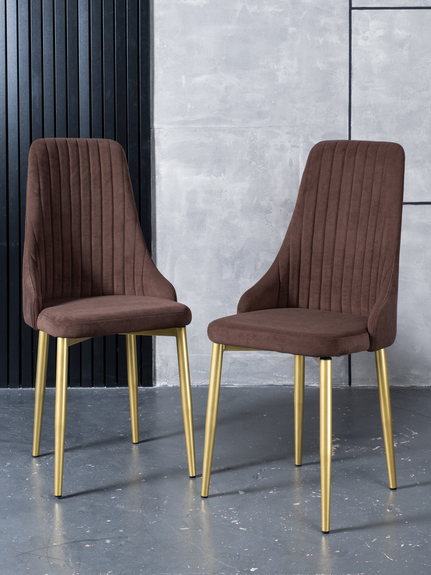 Купить Стулья для кухни 2 шт Кора мягкие, с высокой спинкой, коричнивые, велюр / Комплект кухонных стульев