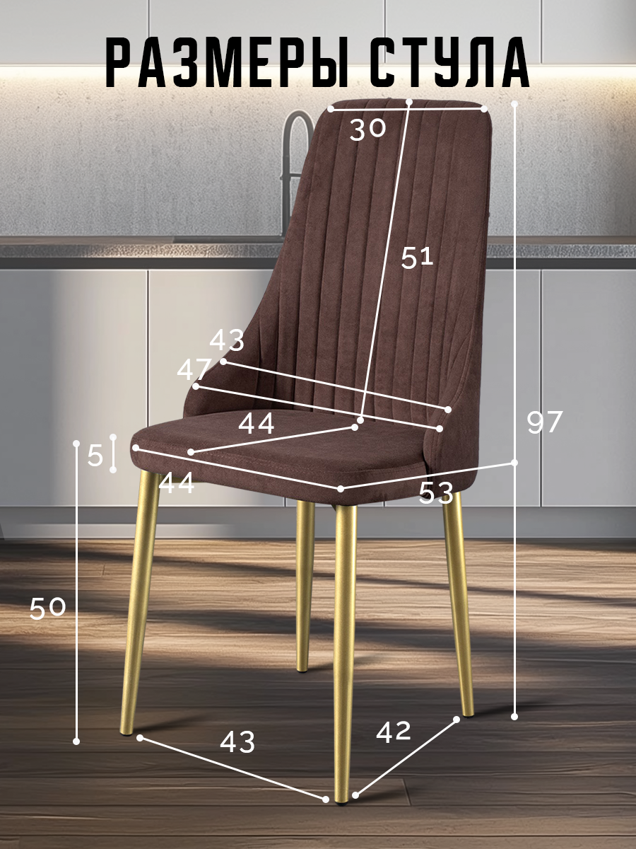 СохранитьСтулья для кухни 2 шт Кора мягкие, с высокой спинкой, коричнивые, велюр / Комплект кухонных стульев интересное: