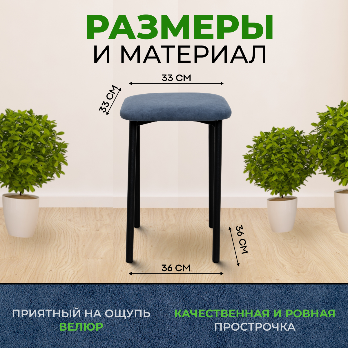 Табуретки для кухни SANYAK с мягким сиденьем, комплект 4 шт, велюр, Синий интересное: