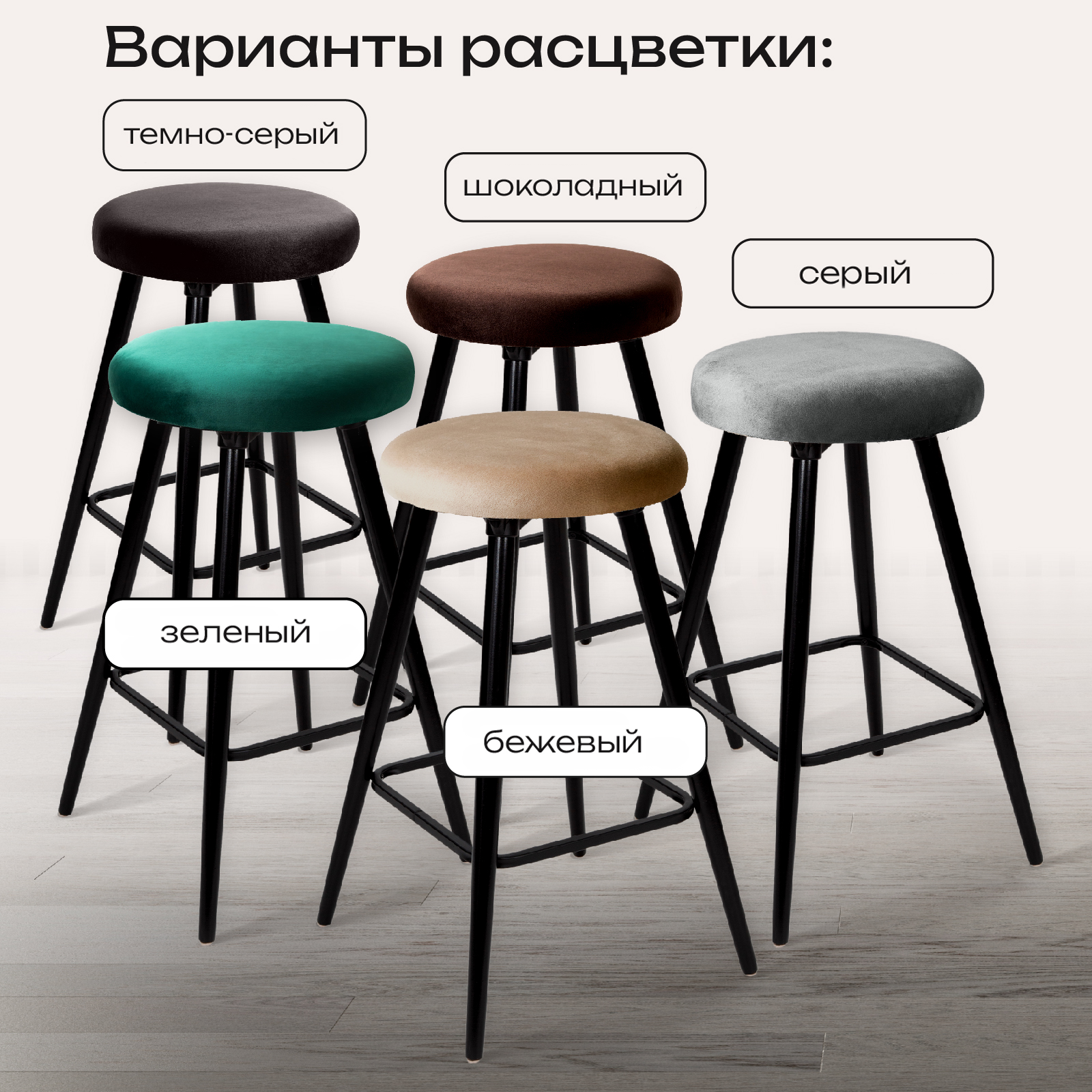 Барный стул кухонный лофт комплект 2 штуки, мягкий обеденный для кухни гостиной и дома, вельвет темно-серый, АМИ мебель