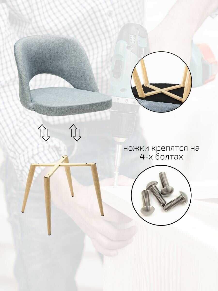 Комплект премиум стульев для кухни 2 шт, стул для кухни обеденный со спинкой Hugs Светло-серый + Ножки Дуб