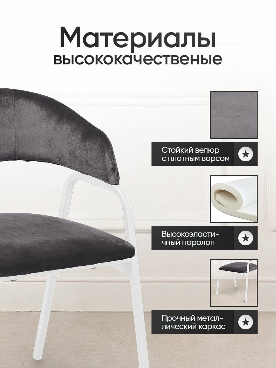 СохранитьСтулья для кухни комплект 4 шт, мягкий со спинкой и подлокотниками, кухонные обеденные для дома, велюровые Серые, новые ножки. интересное: