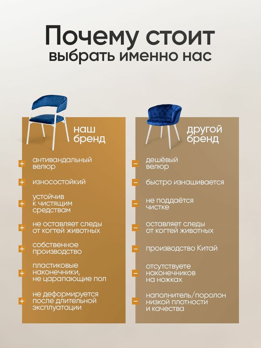 СохранитьСтулья для кухни комплект 4 шт, мягкий со спинкой и подлокотниками, кухонные обеденные для дома, велюровые Синие, белые ножки. интересное: