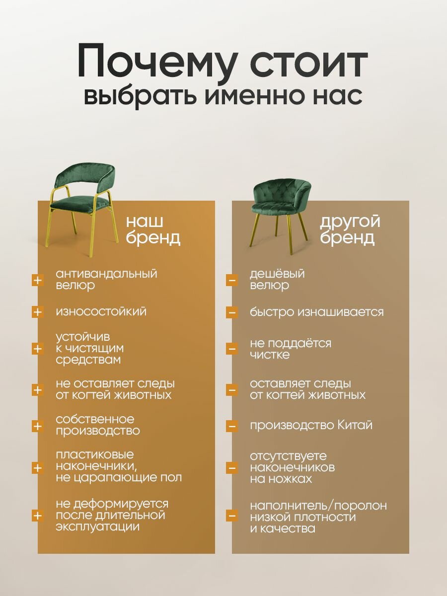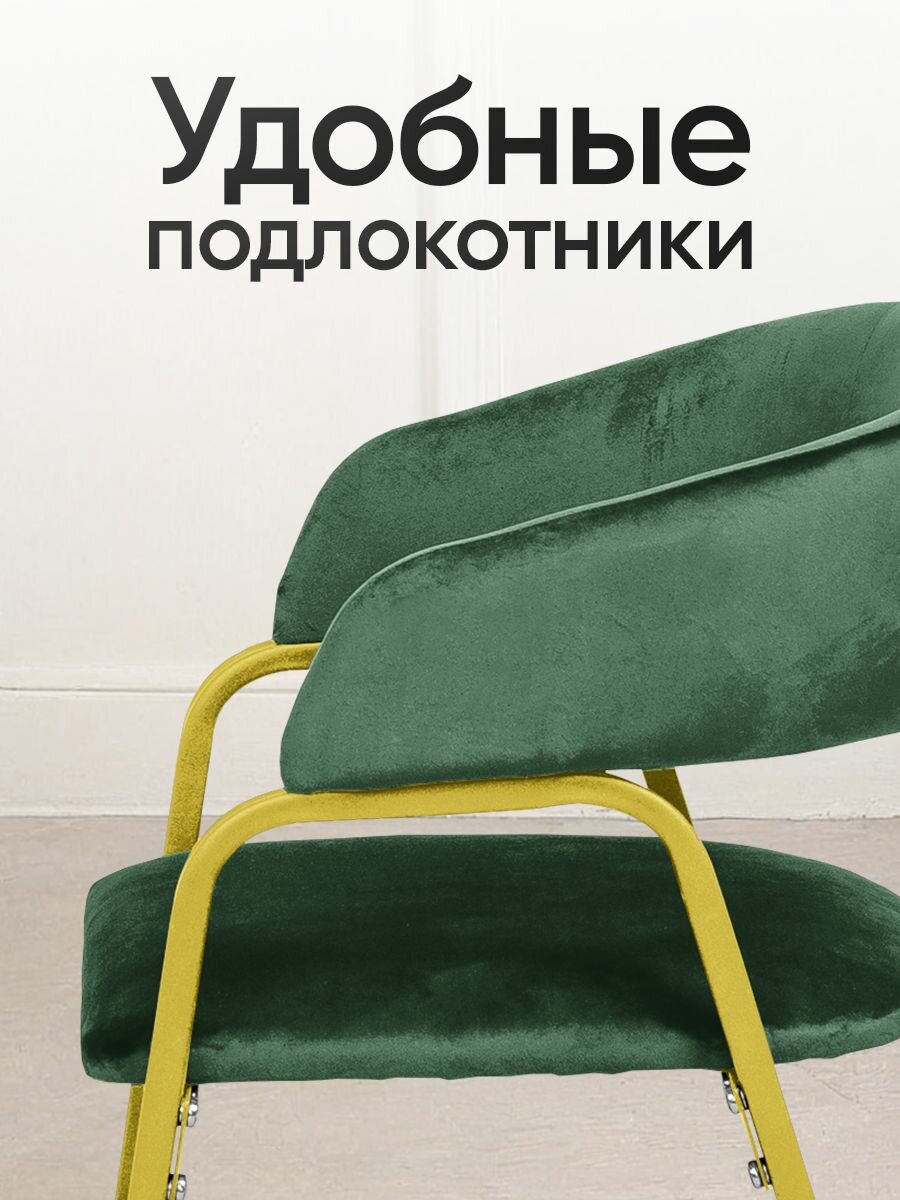СохранитьСтулья для кухни комплект 4 шт, мягкий со спинкой и подлокотниками, кухонные обеденные для дома, велюровые Зеленые, золотые ножки. интересное: