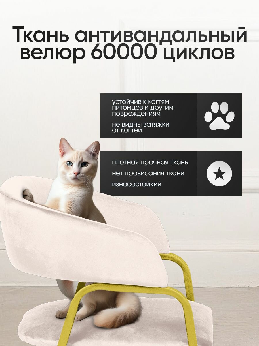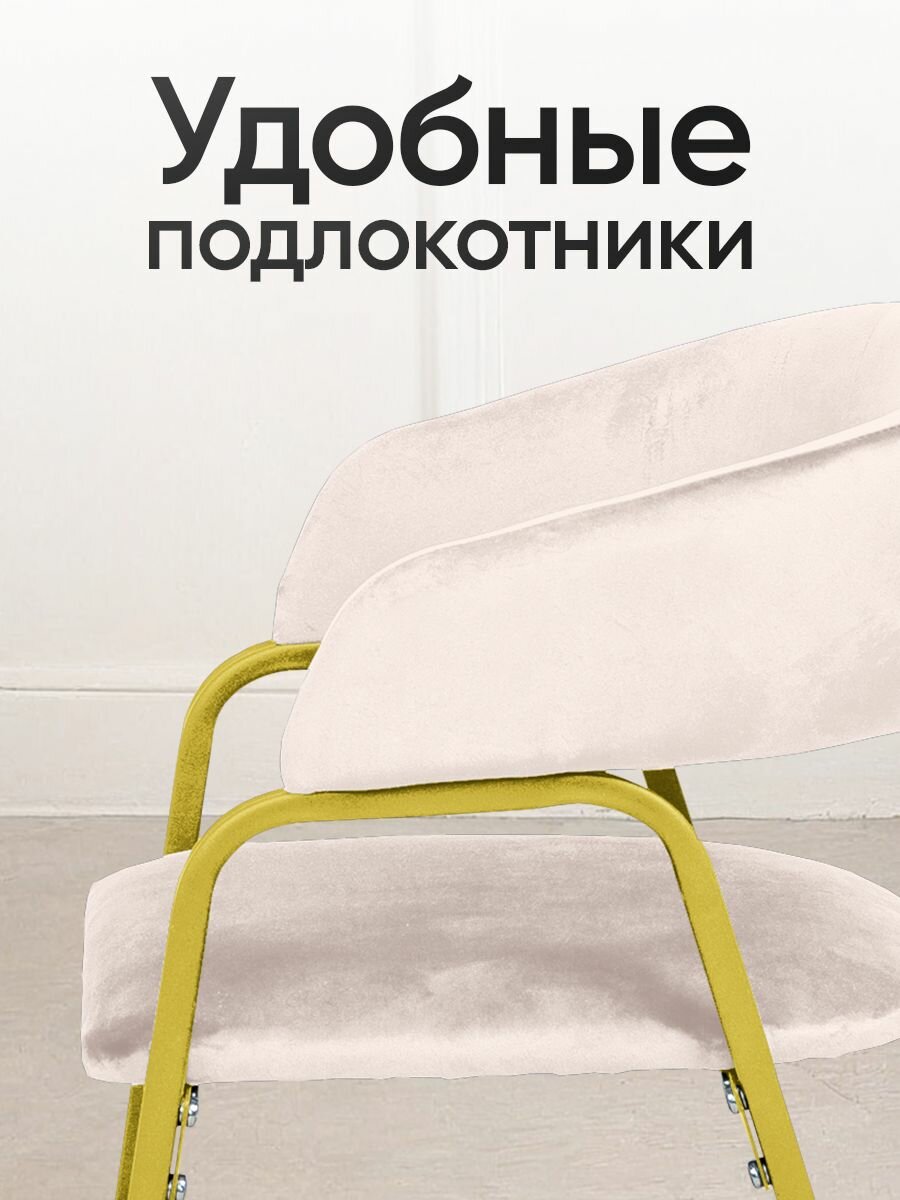 СохранитьСтулья для кухни комплект 4 шт, мягкий со спинкой и подлокотниками, кухонные обеденные для дома, велюровые Бежевые, золотые ножки. интересное: