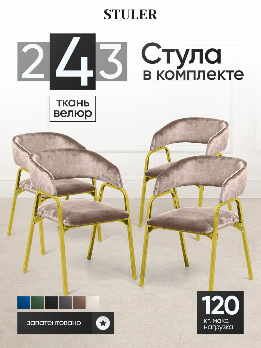 Комплект стульев STULER Amater, для кухни, велюр, с подлокотниками, 4 шт