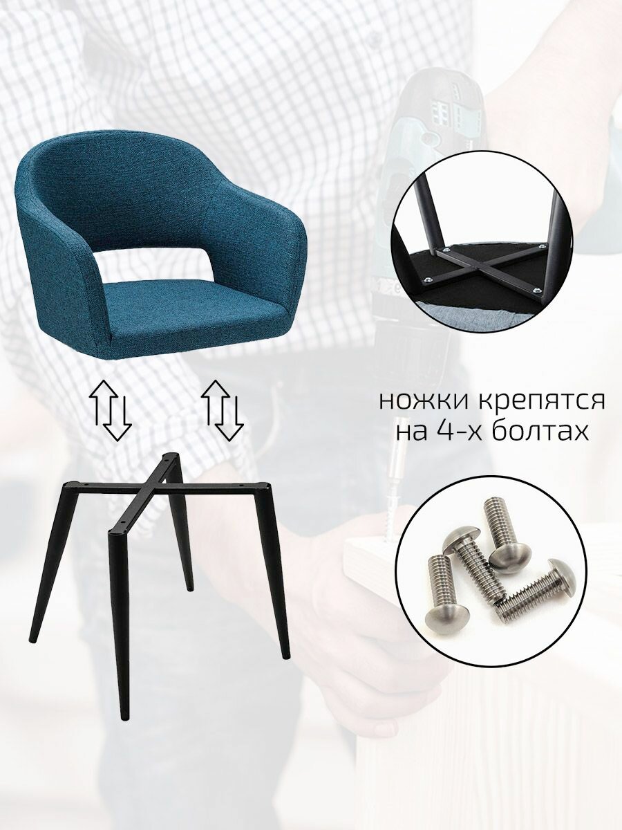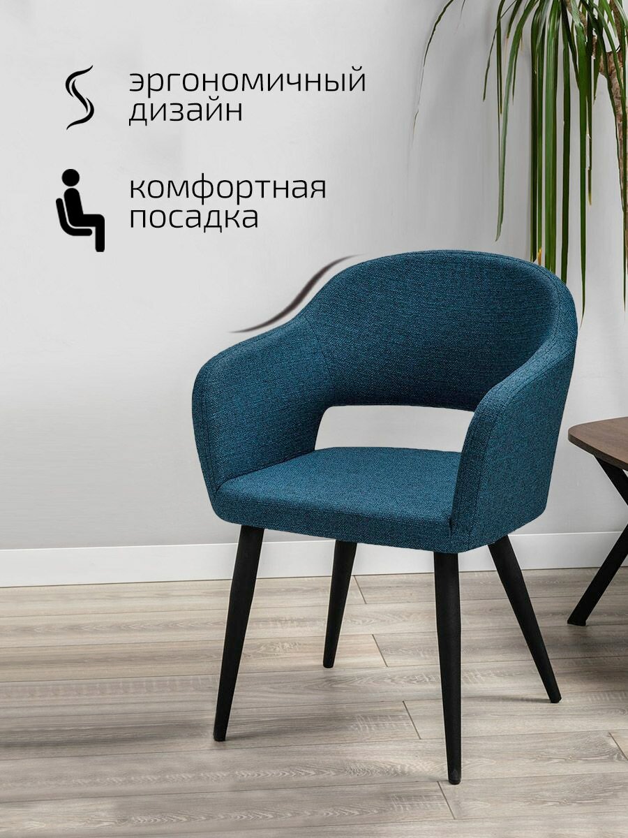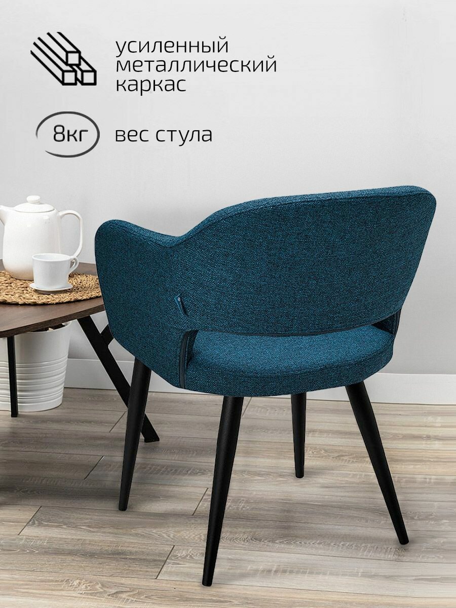 Стулья для кухни премиум комплект 2 шт, стул кухонный Oscar синий + черные ножки арки