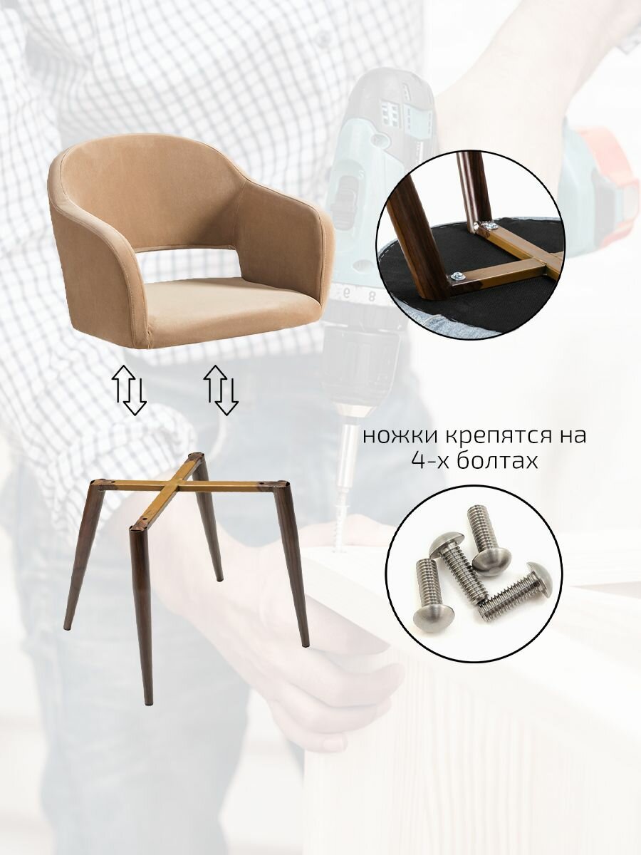 Стулья для кухни премиум комплект 2 шт, стул кухонный Oscar темно-бежевый + ножки темный орех