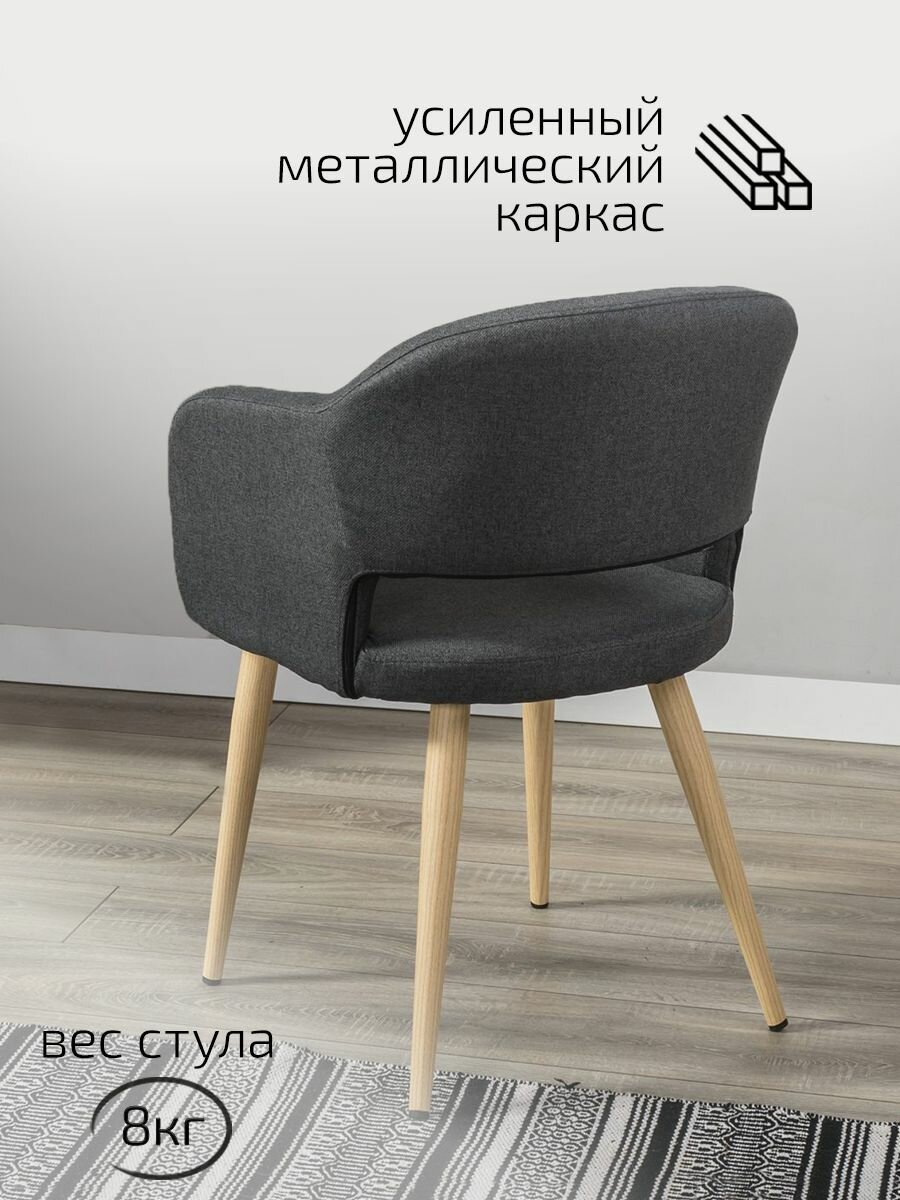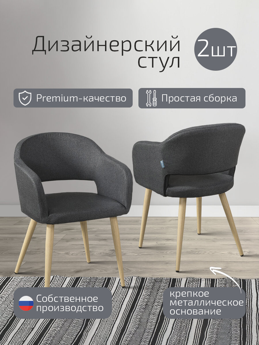 Стулья для кухни премиум комплект 2 шт, стул кухонный Oscar мягкий со спинкой темно-серый + ножки дуб