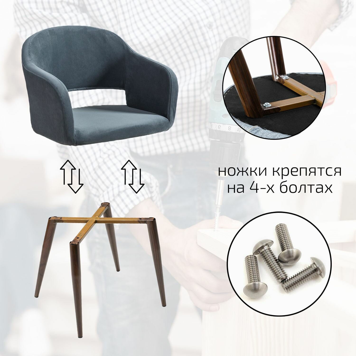 Стулья для кухни премиум комплект 2 шт, стул кухонный Oscar темно-серый + ножки темный орех