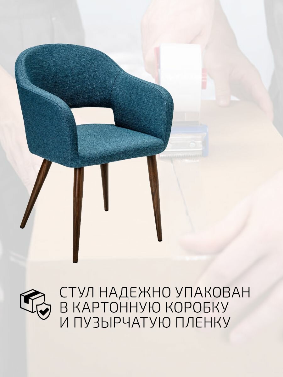 Стул кухонный премиум, стул на кухню мягкий со спинкой Oscar синий + ножки темный орех