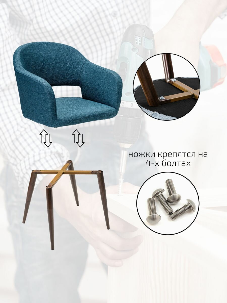 Стулья для кухни премиум комплект 2 шт, стул кухонный Oscar темно-синий + ножки темный орех