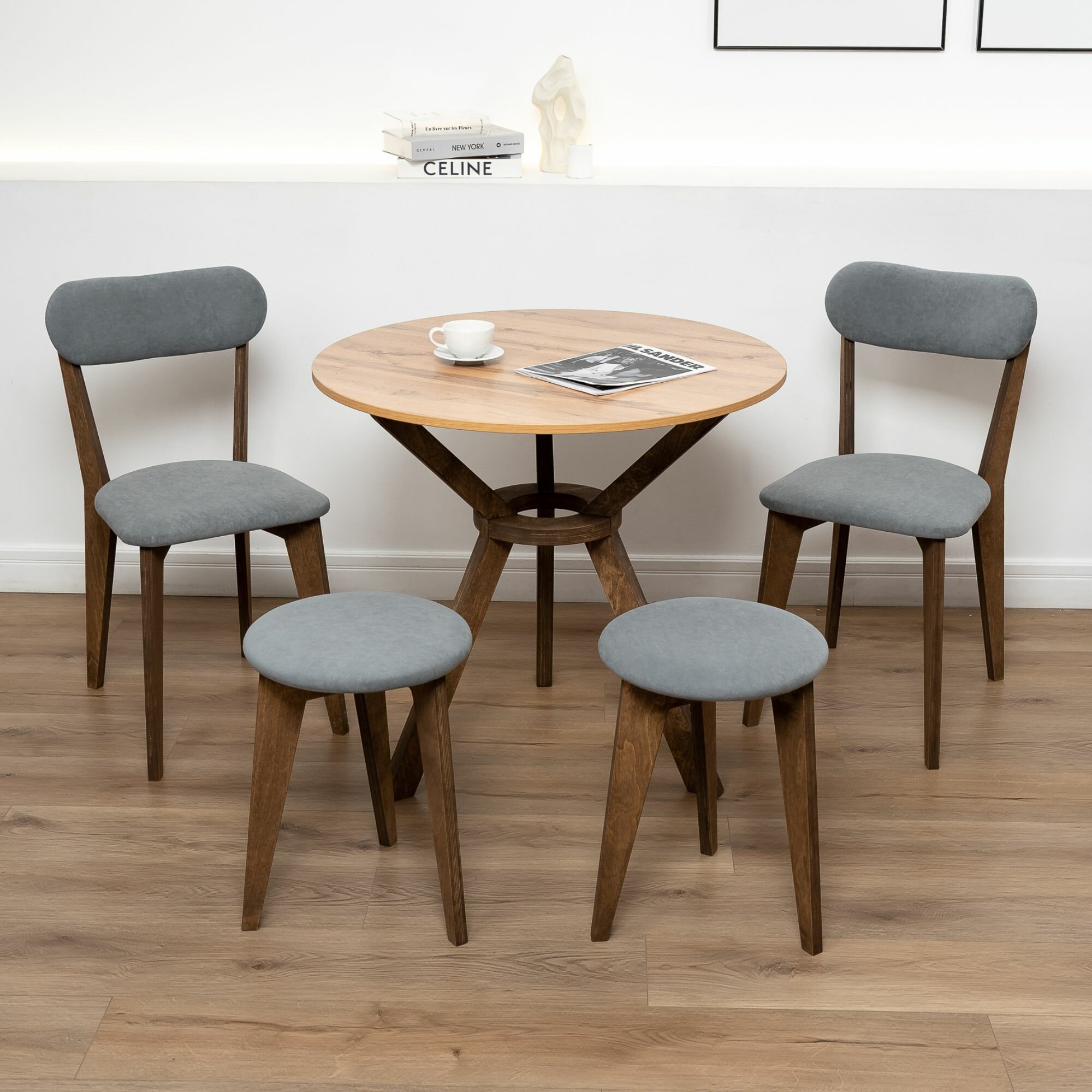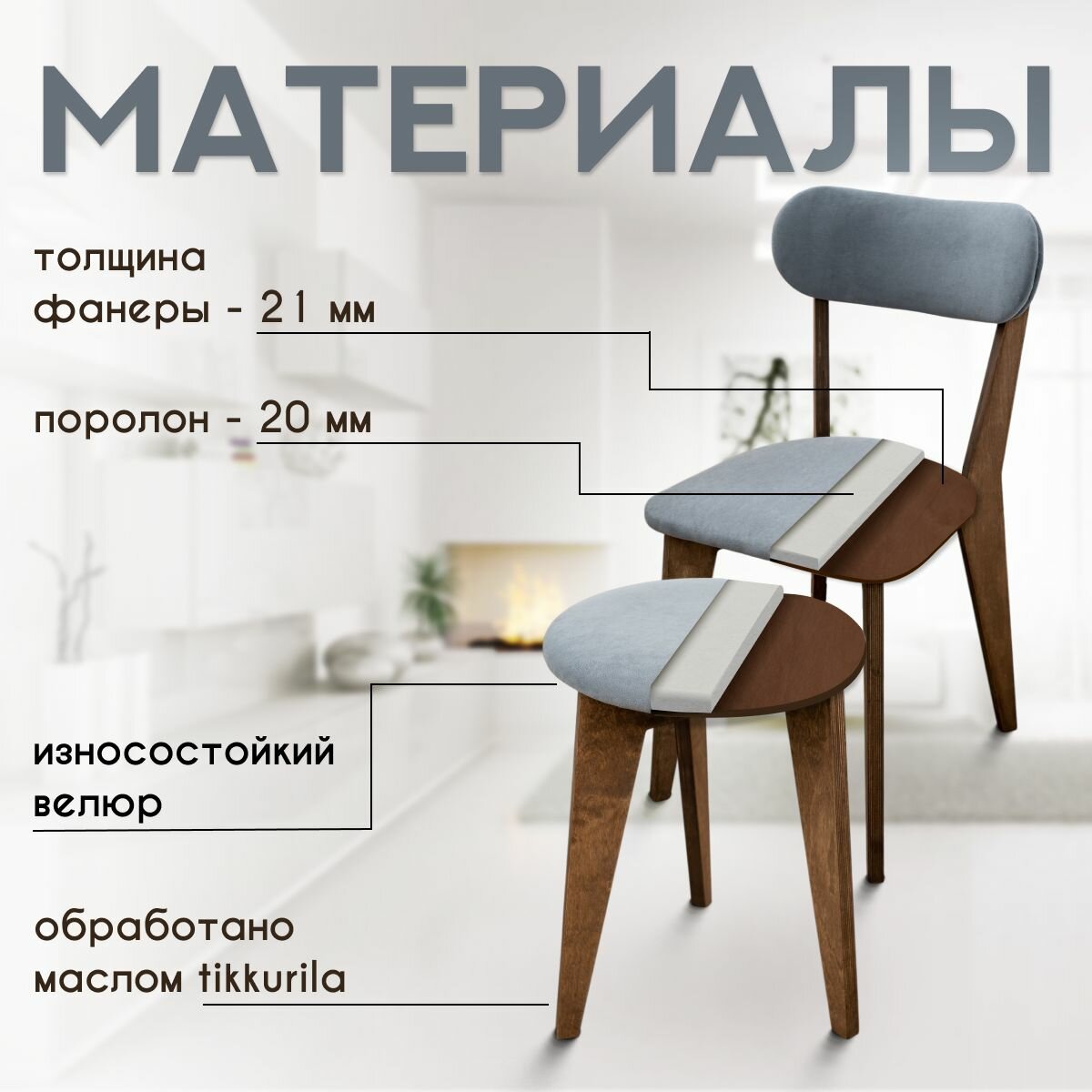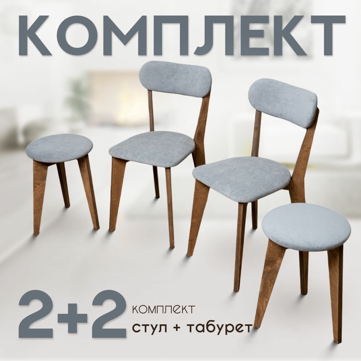 СохранитьСтулья для кухни SANYAK 2 шт мягкие со спинкой и табуретки 2 шт комплект для обеденной зоны, велюр, Серый интересное: