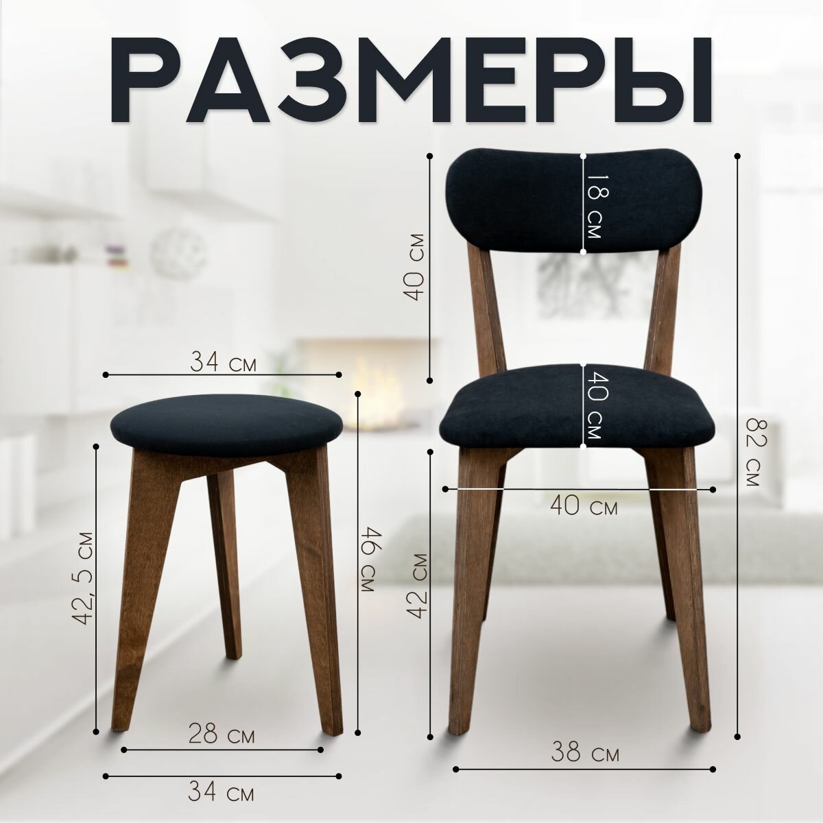 СохранитьСтулья для кухни SANYAK 2 шт мягкие со спинкой и табуретки 2 шт комплект для обеденной зоны, велюр, Черный интересное: