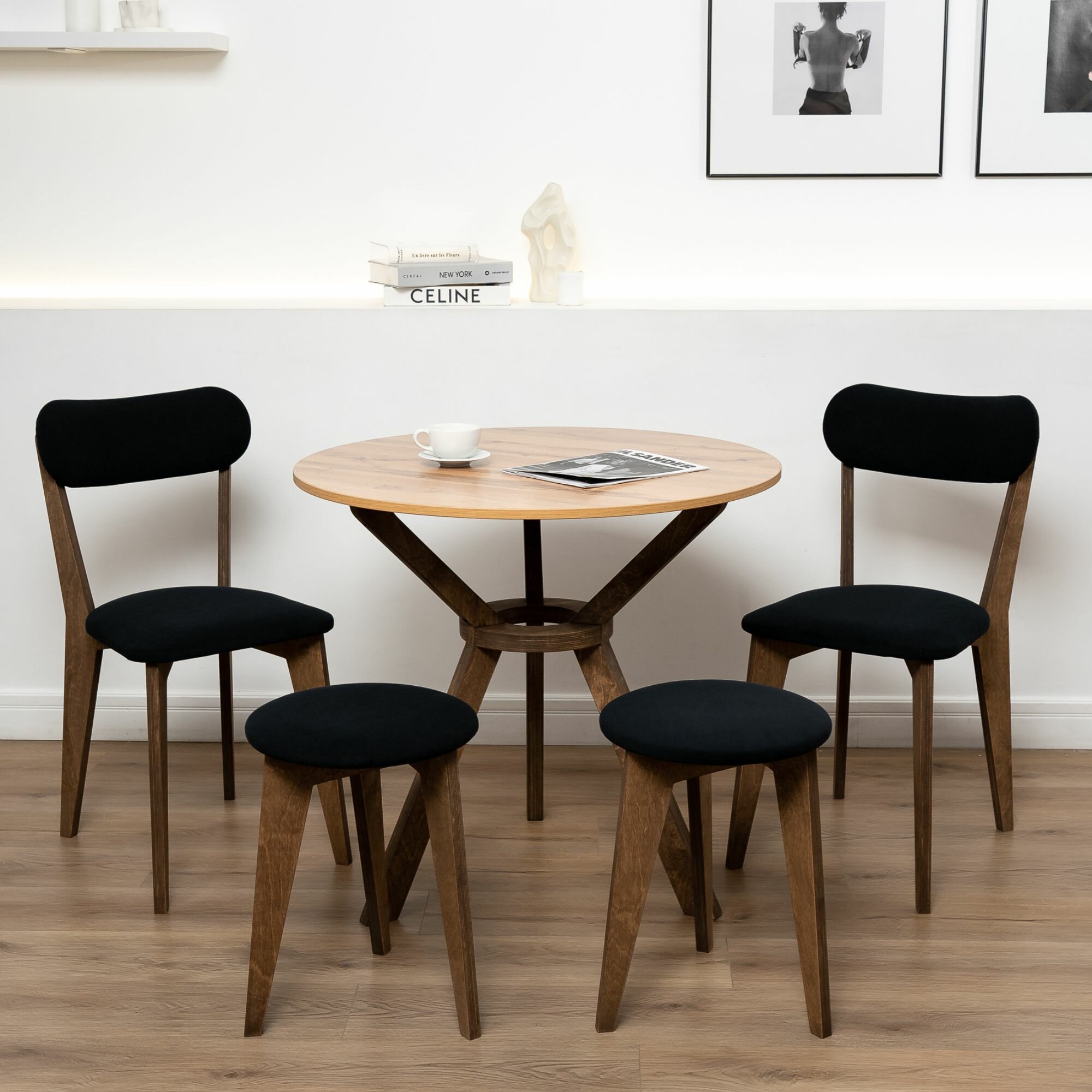 Купить Стулья для кухни SANYAK 2 шт мягкие со спинкой и табуретки 2 шт комплект для обеденной зоны, велюр, Черный