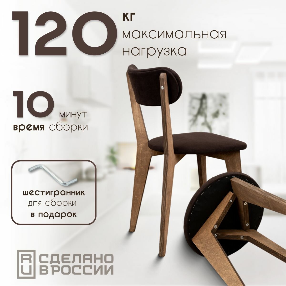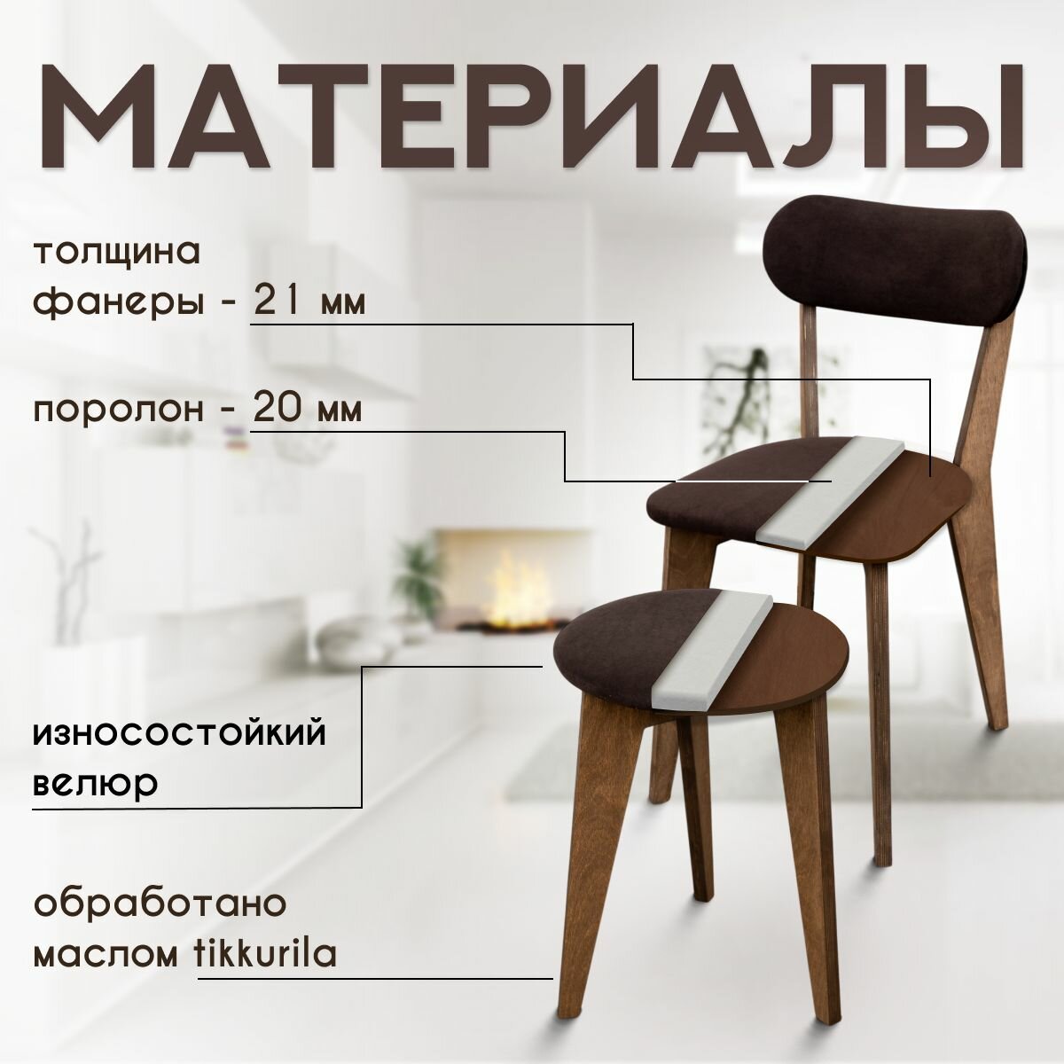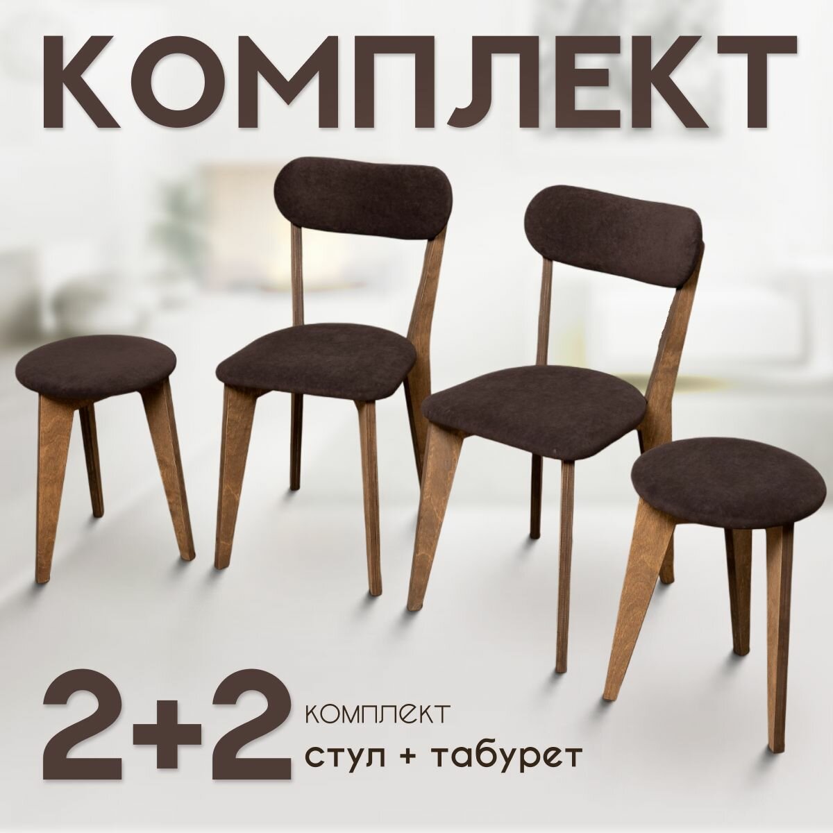 СохранитьСтулья для кухни SANYAK 2 шт мягкие со спинкой и табуретки 2 шт комплект для обеденной зоны, велюр, Коричневый интересное: