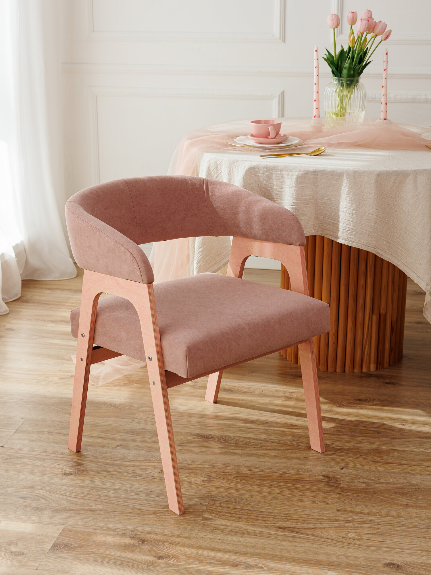 СохранитьСтул кресло для кухни дома и офиса розовый/пыльно-розовый, из велюра, 63х56х72 см, до 120 кг интересное: