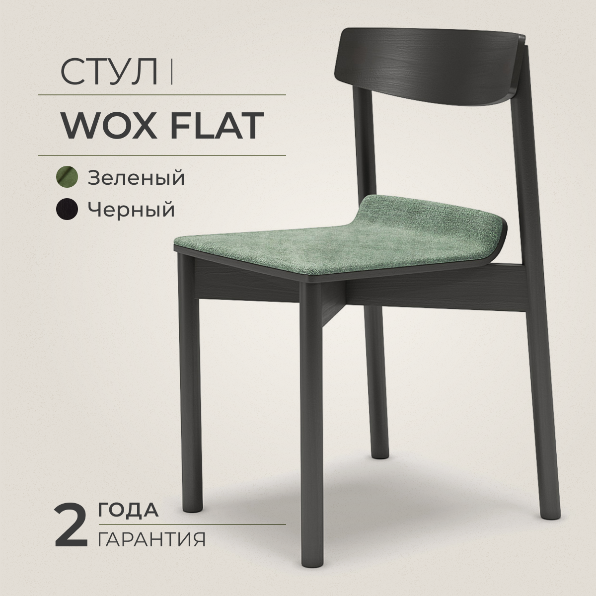 Стул дизайнерский Wox Flat S, ясень черный, велюр зеленый (39) интересное:
