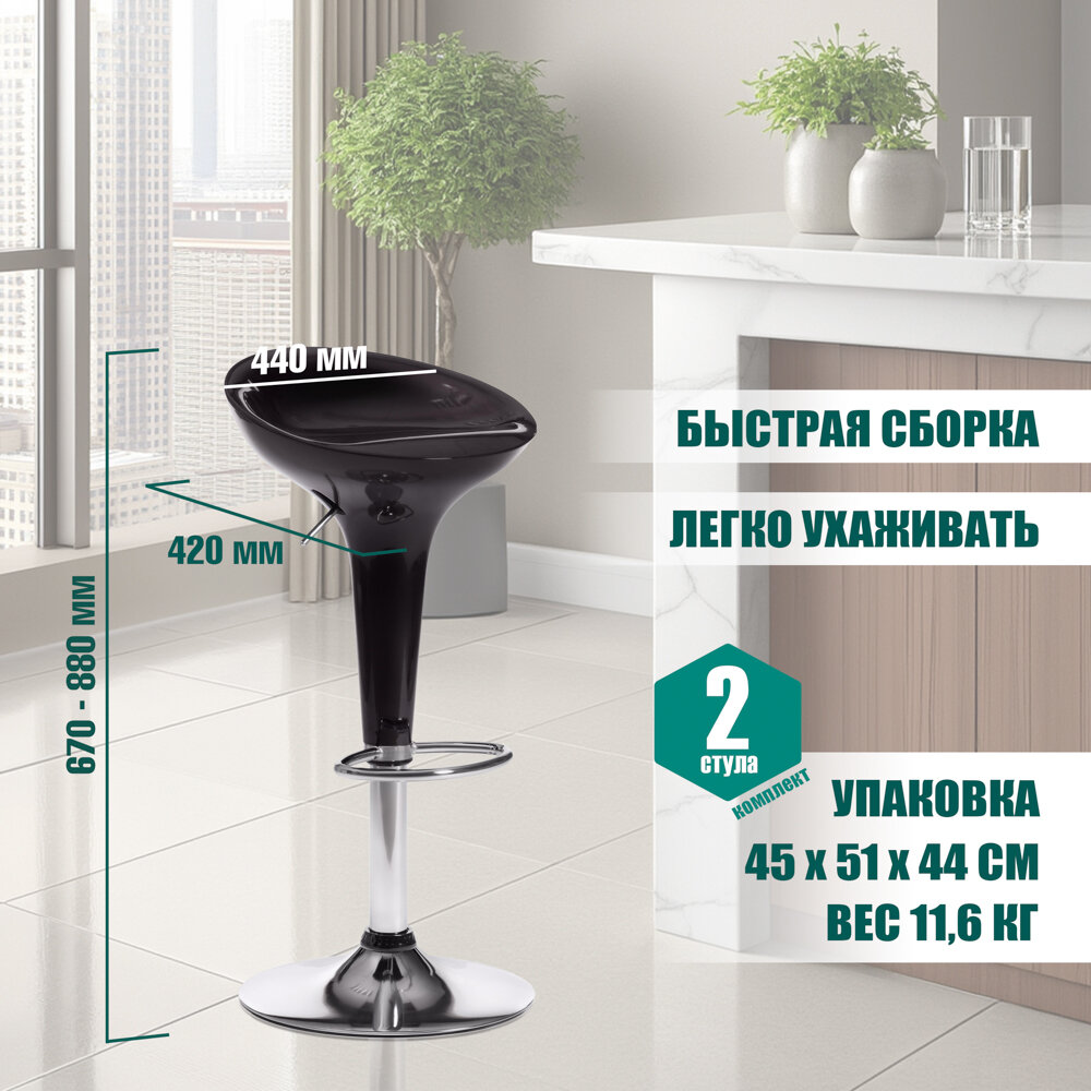 Комплект барных стульев TetChair NAIL (mod. KY801), 2 шт, пластик/металл, черный/хром интересное: