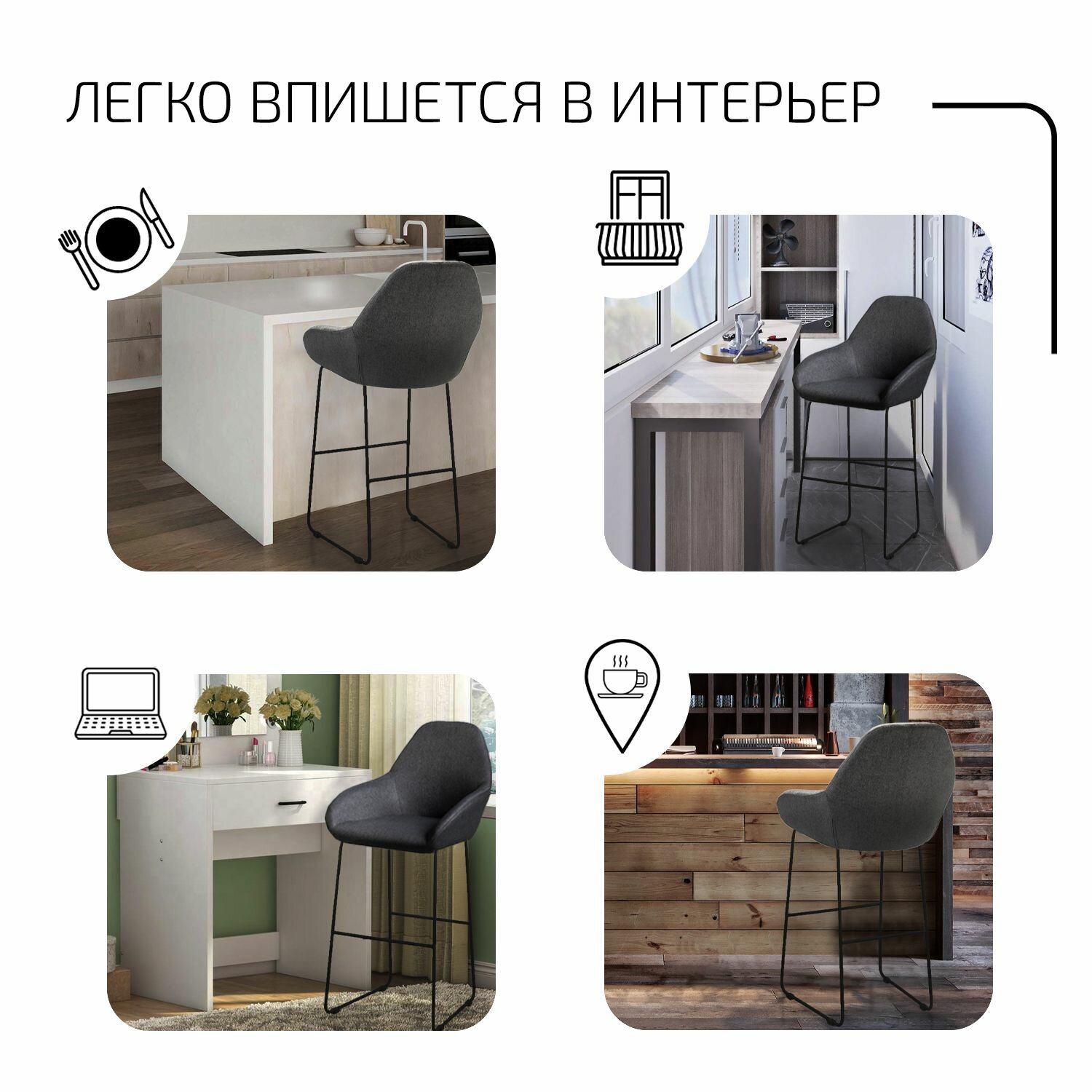 СохранитьБарный стул со спинкой для кухни, барное кресло премиум Kent Серый интересное: