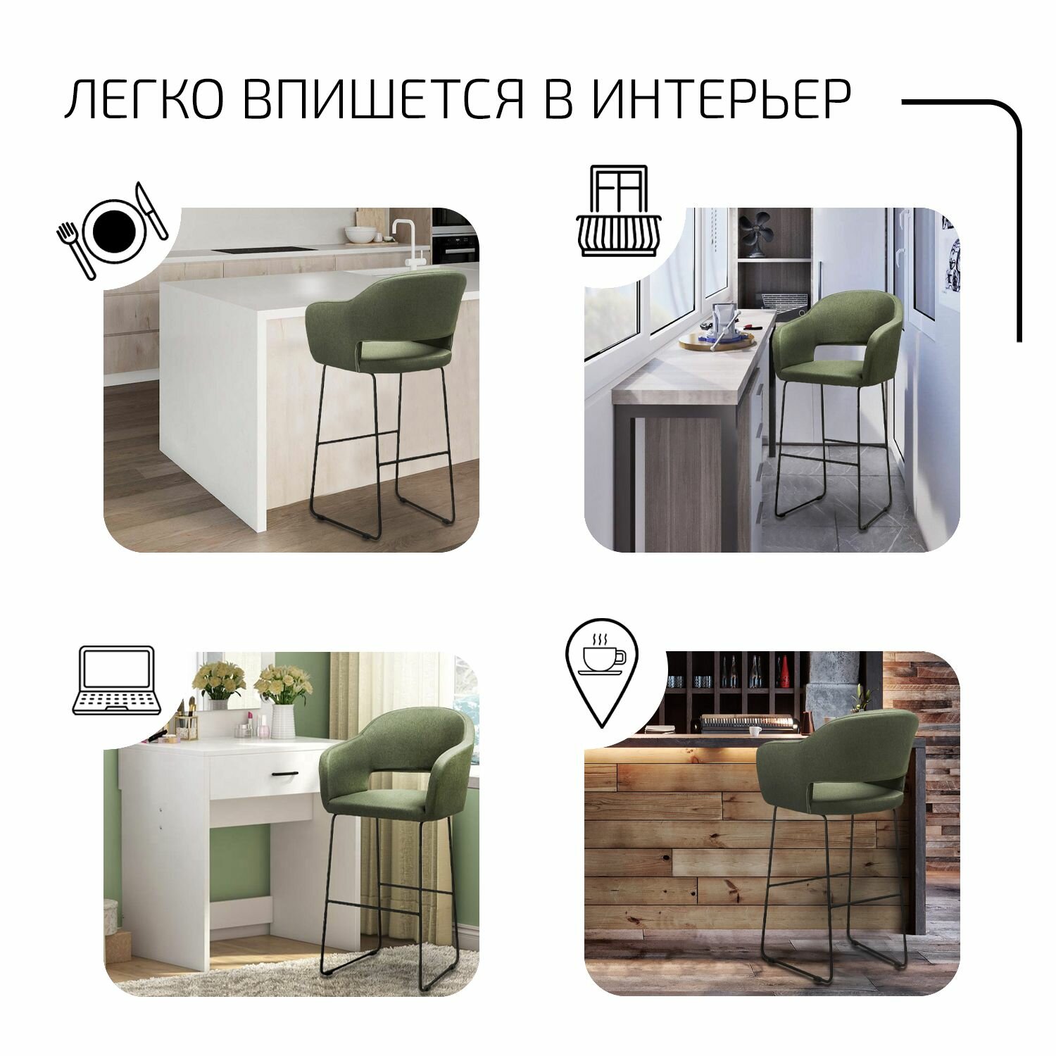 СохранитьБарный стул со спинкой, стул барный для кухни Oscar зеленый линк интересное: