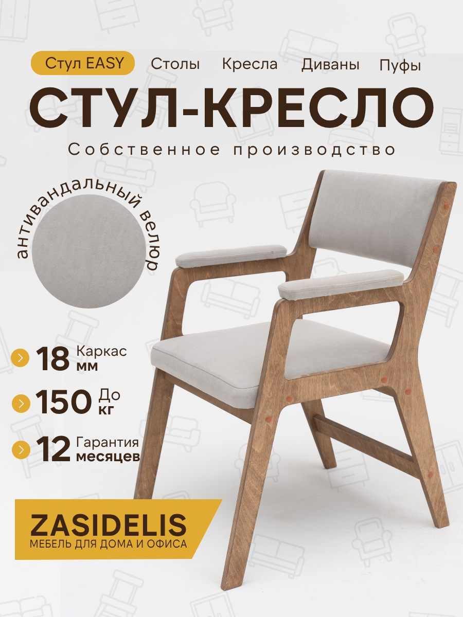 СохранитьСтул-кресло ZASIDELIS Easy, велюр, антивандальное, ножки, 55 см x 62 см x 84 см интересное: