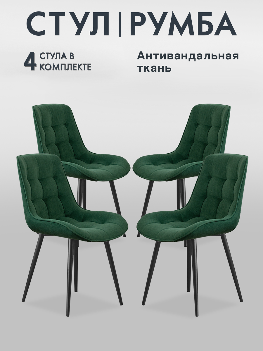 Купить Стулья для кухни Румба мягкие со спинкой 4 шт. зеленый с черными ножками