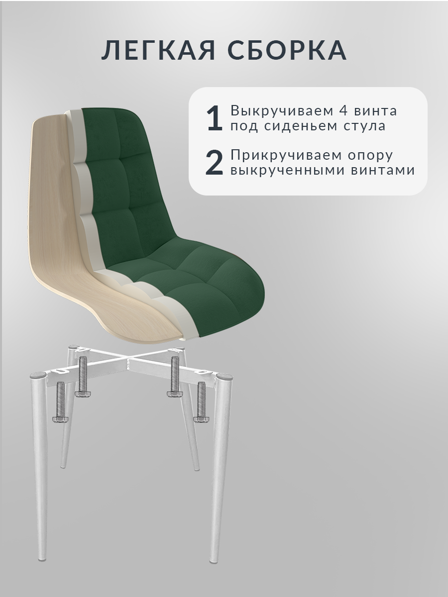 Стулья для кухни от Lussor Румба со спинкой , мягкие, 2 шт, зеленый с белыми ножками
