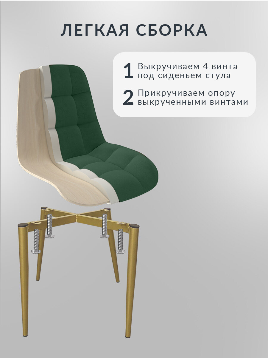 Купить Стулья для кухни от Lussor Румба со спинкой , мягкие, 2 шт. зеленый с золотистыми ножками