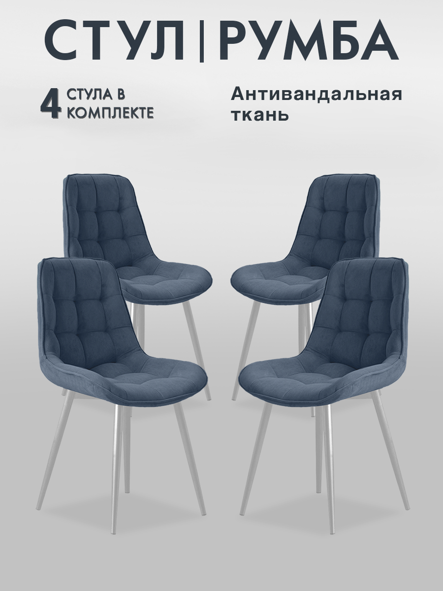 Купить Стулья для кухни Румба мягкие со спинкой 4 шт, синий с белыми ножками