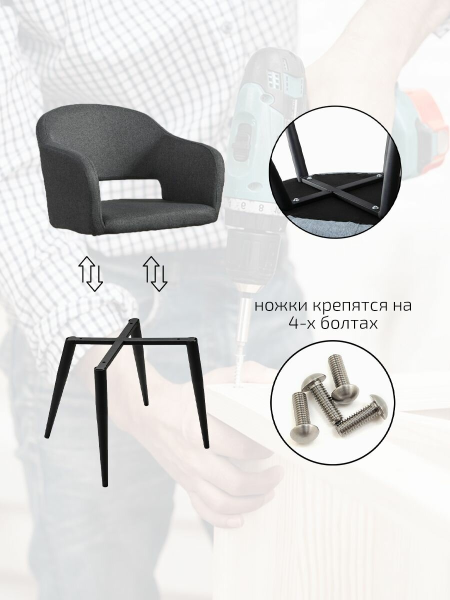 Стул для кухни премиум, стул кухонный Hugs Темно-серый + Черные ножки