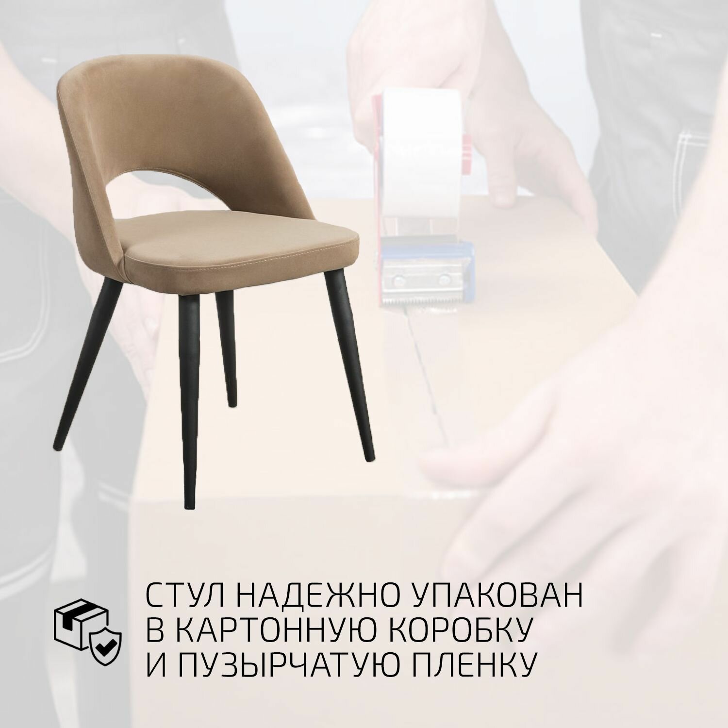 Стул для кухни премиум, стул кухонный Hugs Бежевый + Черные ножки
