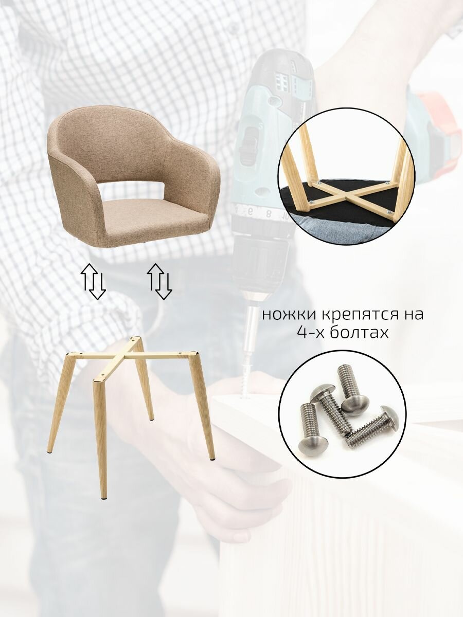 Комплект премиум стульев для кухни 2 шт, стул для кухни обеденный со спинкой Hugs Бежевый + Ножки Дуб