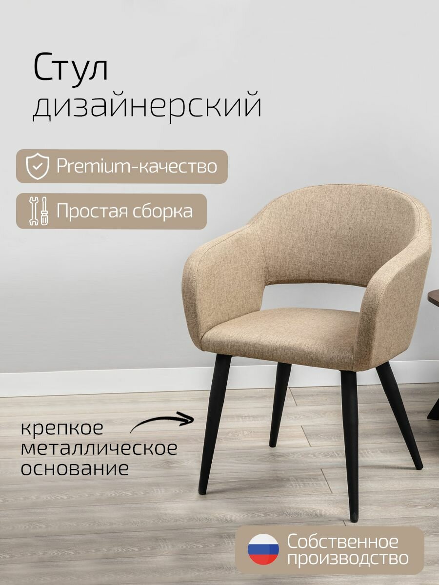 Стул для кухни премиум, стул кухонный Hugs Бежевый + Черные ножки