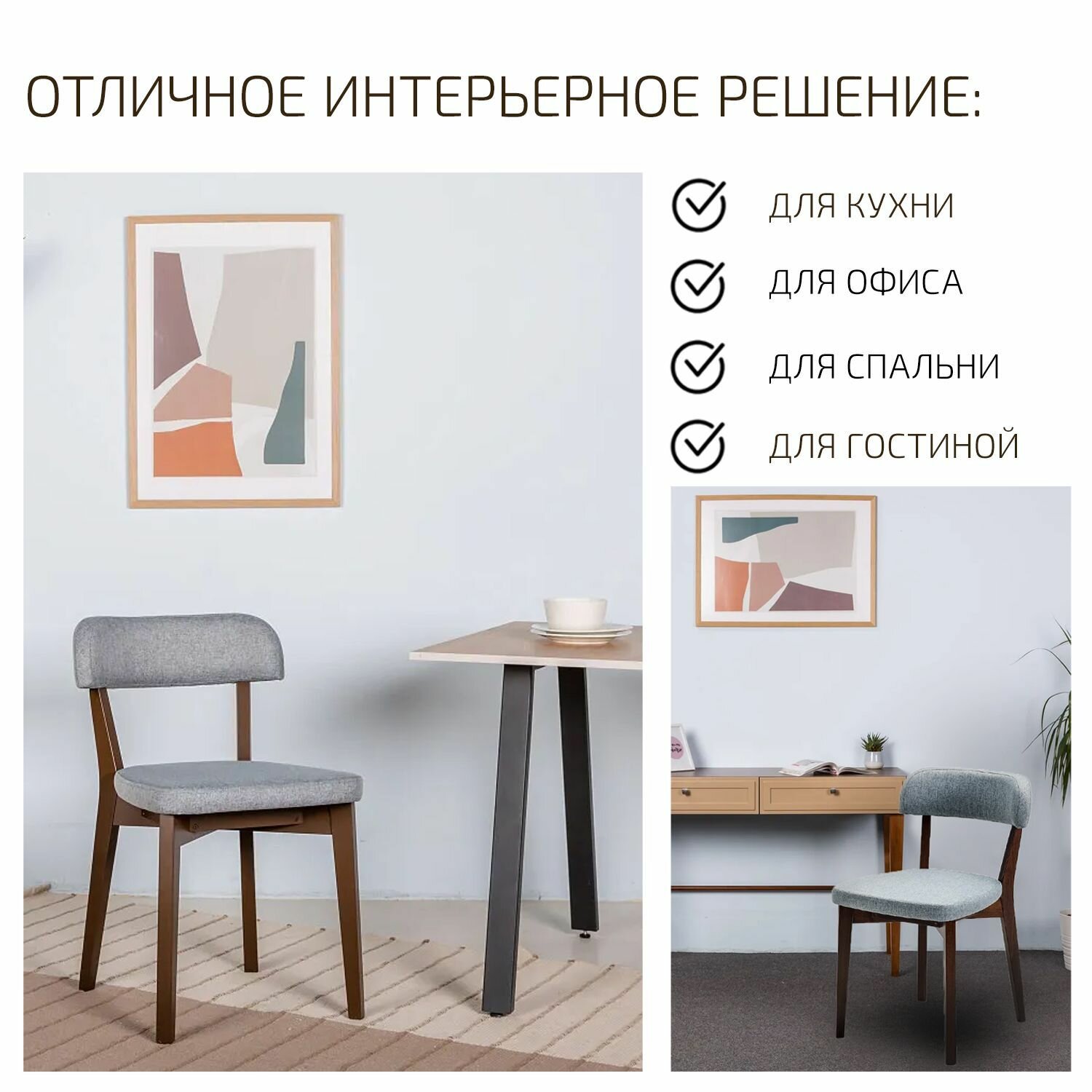 Комплект премиум стульев для кухни 2 шт, стул для кухни обеденный со спинкой Hugs Темно-серый + Ножки темный орех