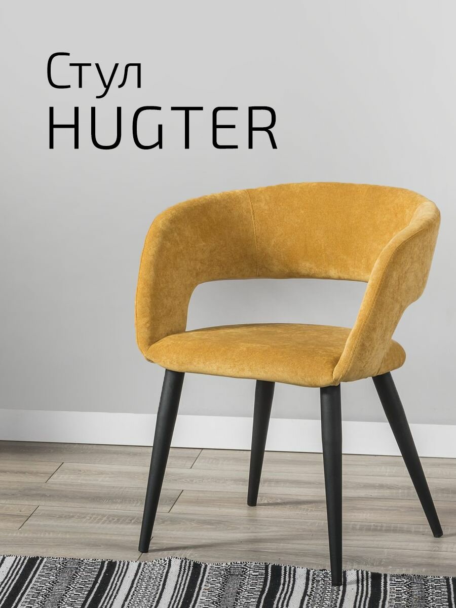 Купить Стул для кухни премиум, стул кухонный Hugs Желтый + Черные ножки