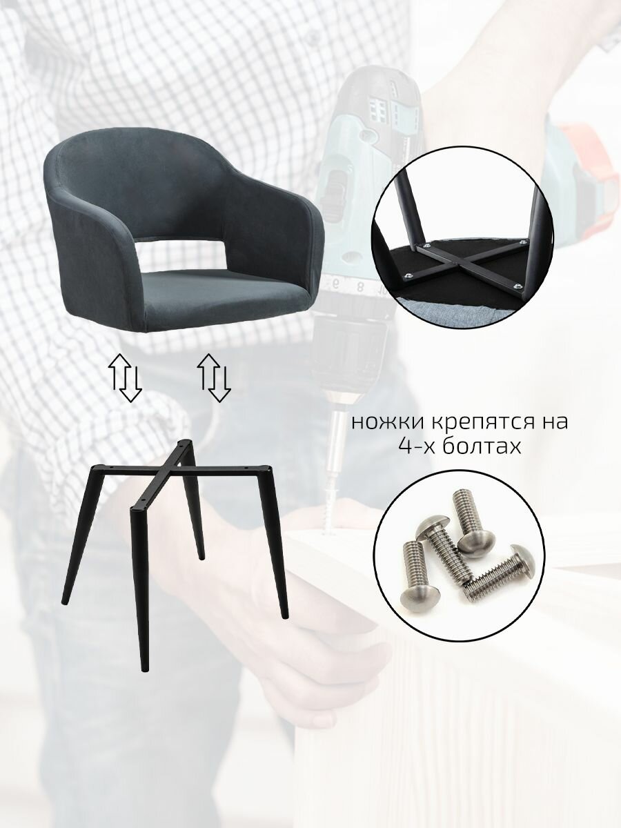 Стул для кухни премиум, стул кухонный Hugs Темно-серый + Черные ножки